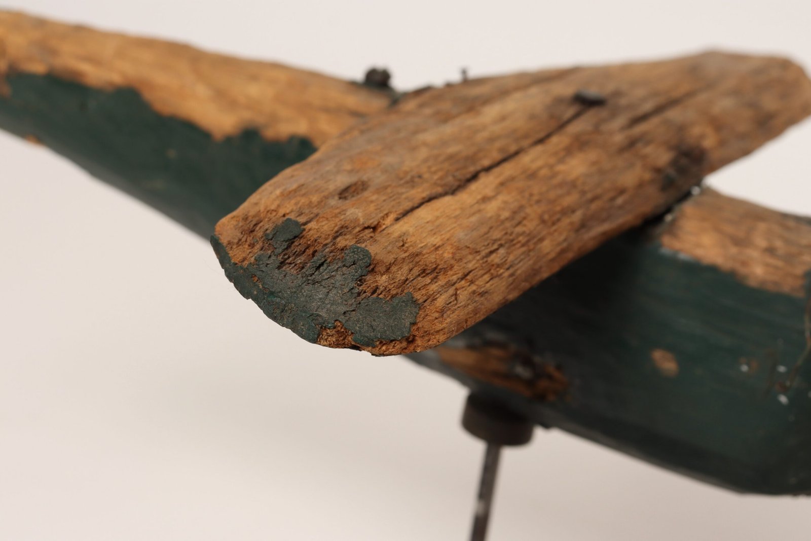 Early 20th Century Folk Art Hand-Carved and Painted Wooden Airplane Weathervane