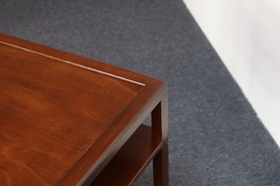 Side/end/occasional table in mahogany with caramel finish (model #4776) designed by Edward Wormley for Dunbar (ca. 1950, Indiana, USA).