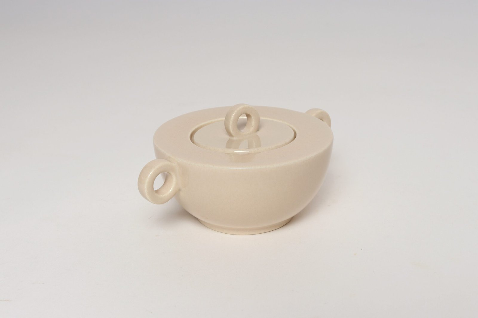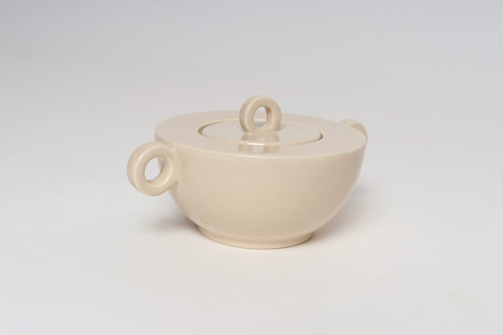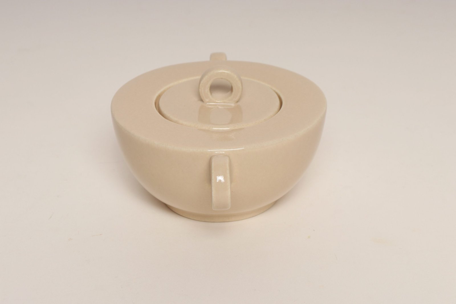 French Art Deco Taupe Ceramic Lidded Sugar Bowl by Jean Luce