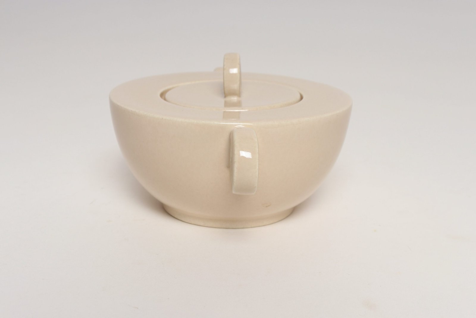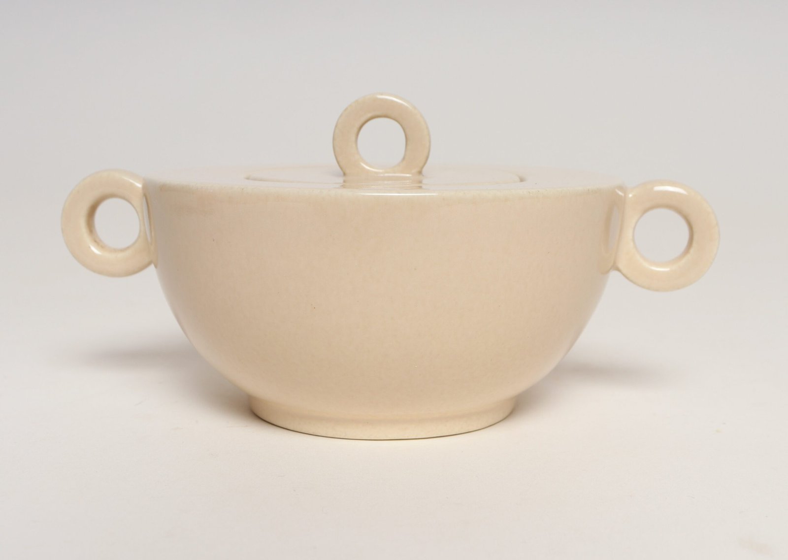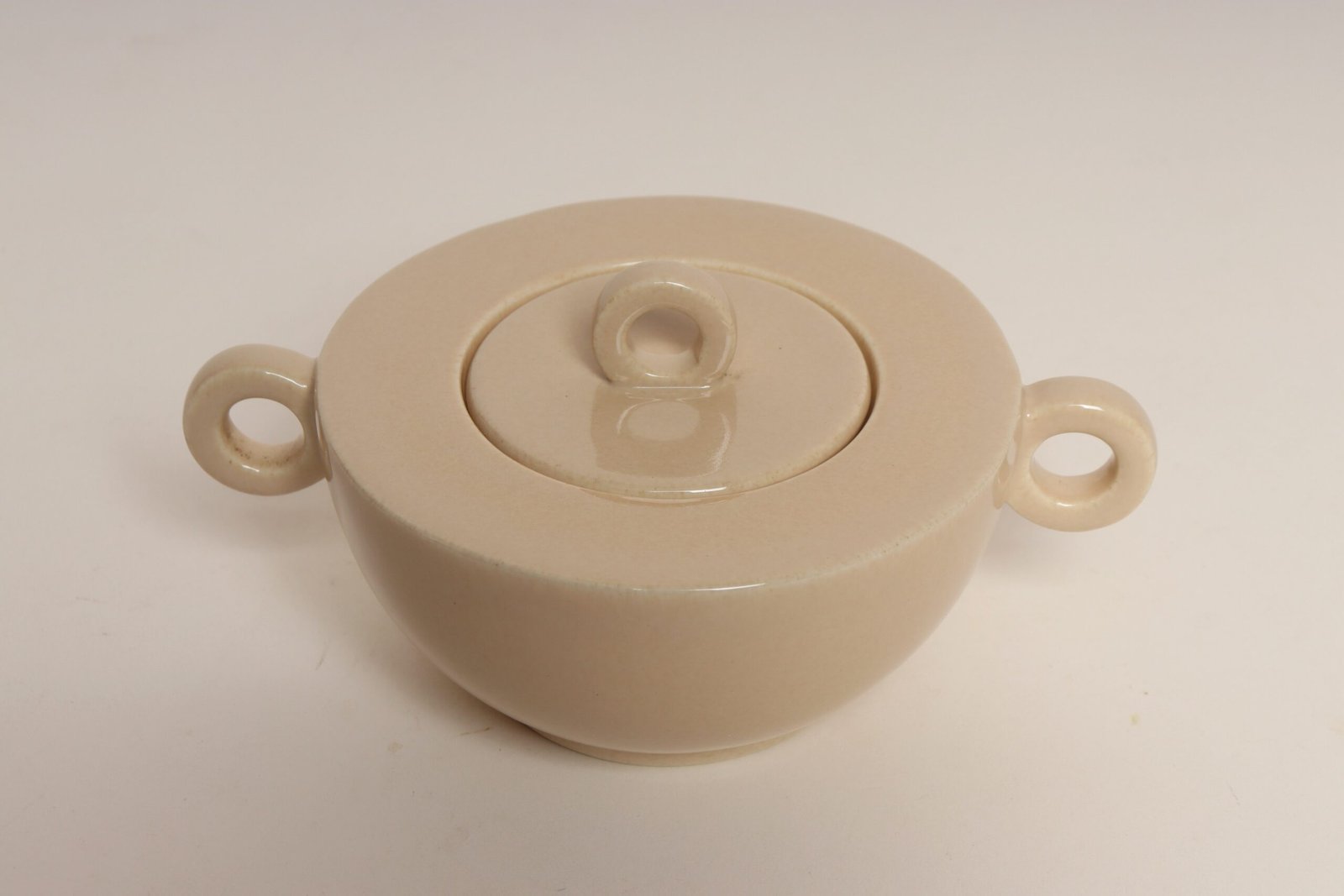 French Art Deco Taupe Ceramic Lidded Sugar Bowl by Jean Luce