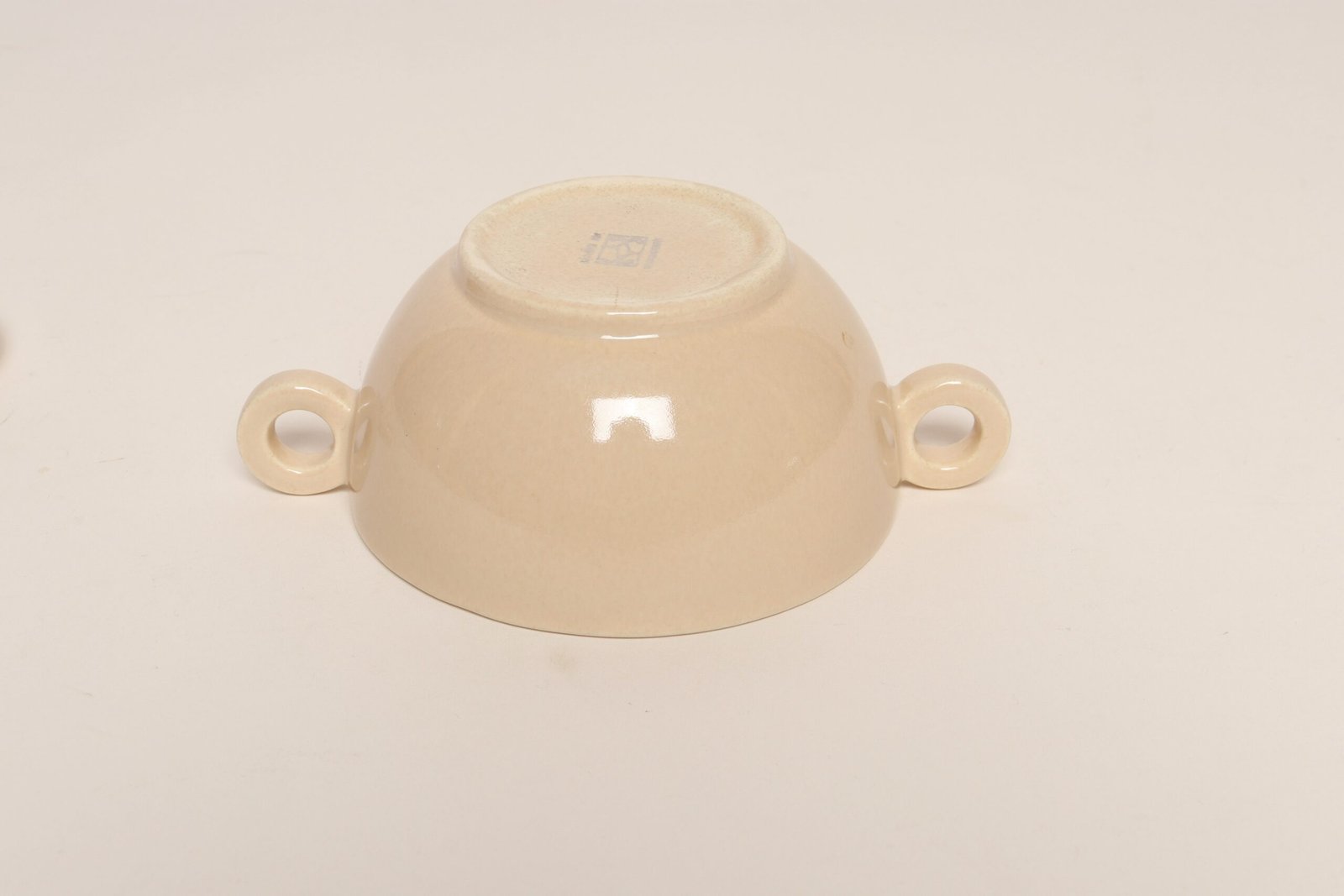 Elegant, organic form with attractive beige/taupe glaze and sculptural loop handles.
