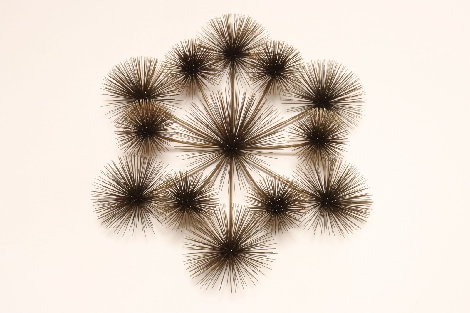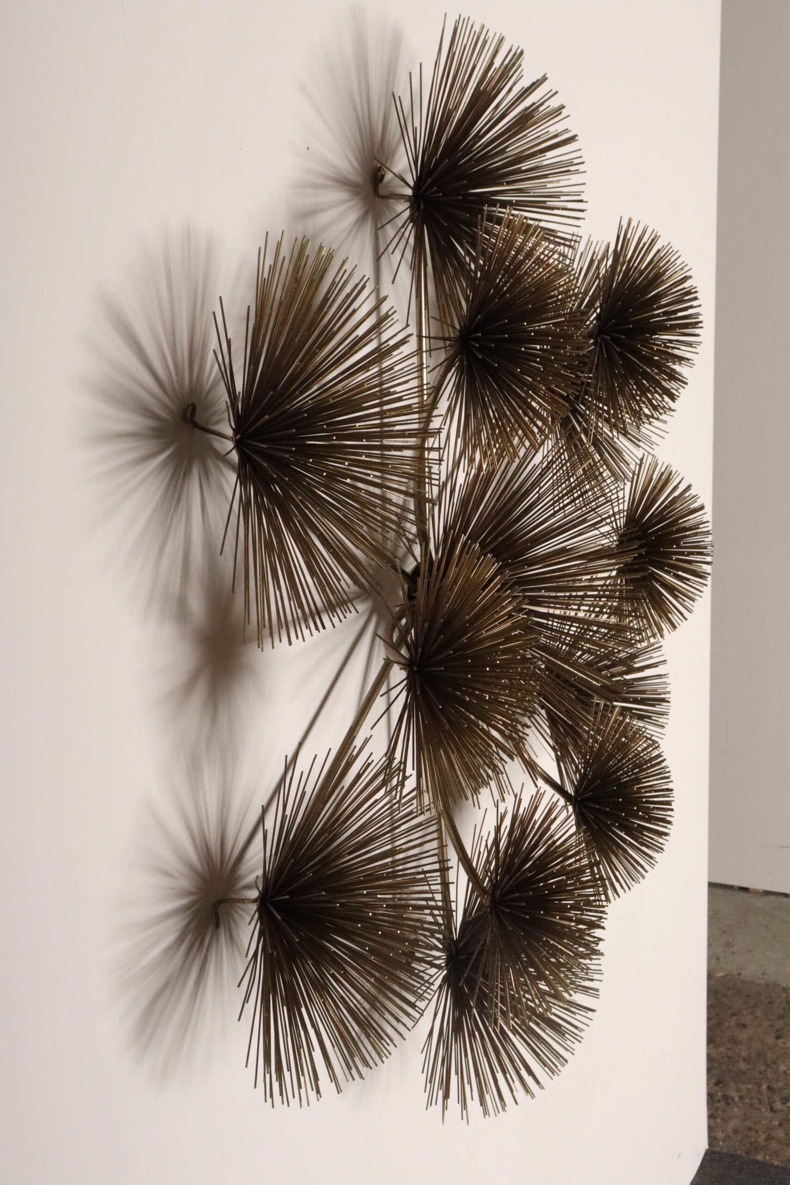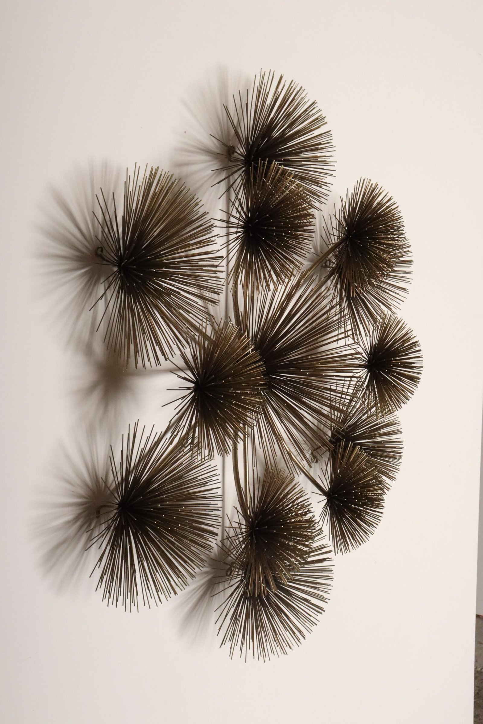 Impressive Modernist brass ‘Pom Pom’ / ‘Sea Urchin’ wall sculpture by Curtis Jere (Curtis Freiler and Jerry Fels) for Artisan House (1979, USA).