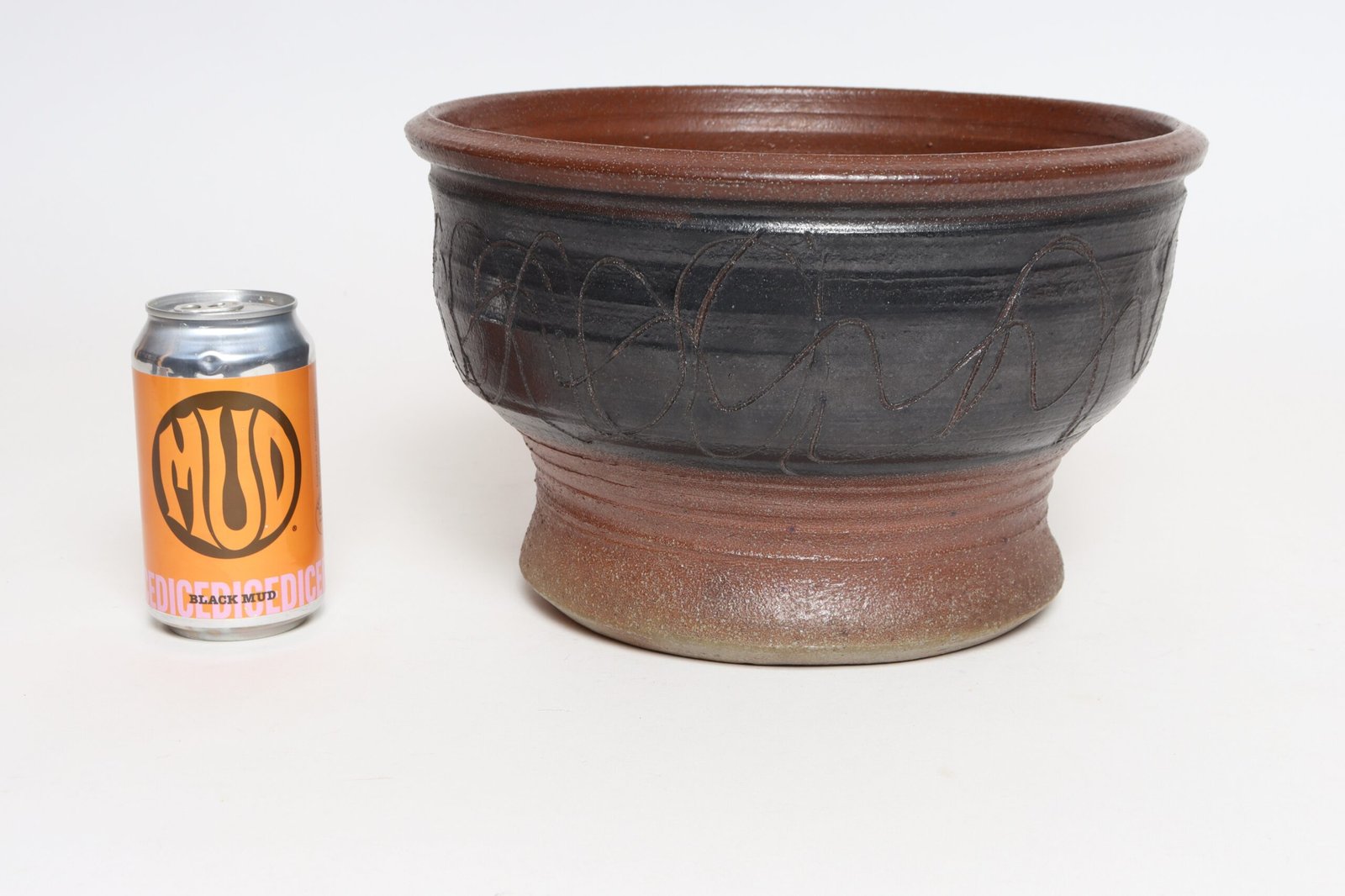 Large Vintage Maroon and Charcoal Sgraffito Ceramic Planter by Deanna Nichols