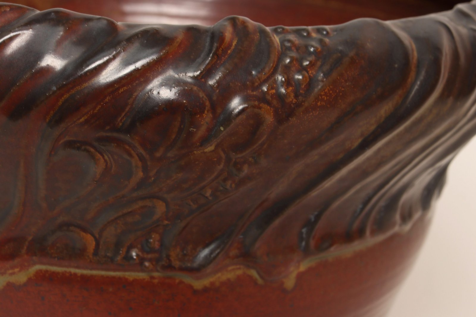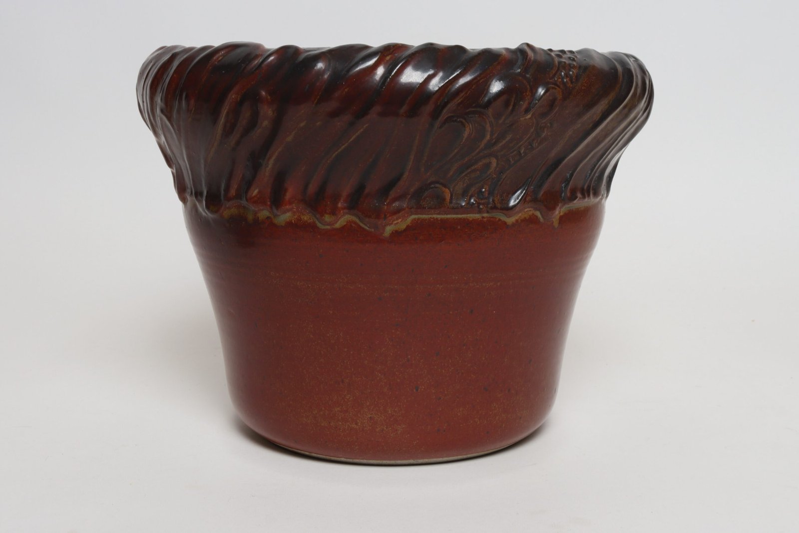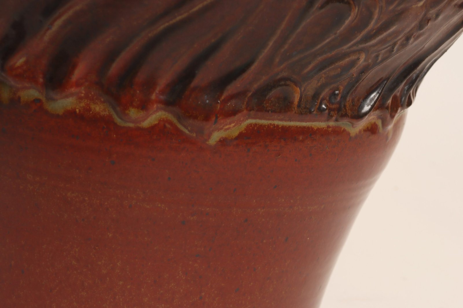 Large Vintage Red, Ochre and Slate Incised Ceramic Planter by Deanna Nichols