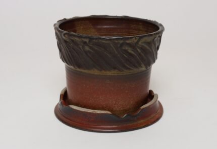 Striking Israeli ceramic pitcher (circa 1960s) by Kernat in high-gloss ochre glaze with hand-painted black, red, and green drip decoration. Modernist form / nice lines with a thick, sculptural handle. Retains the ‘Kernat Made in Israel’ label.