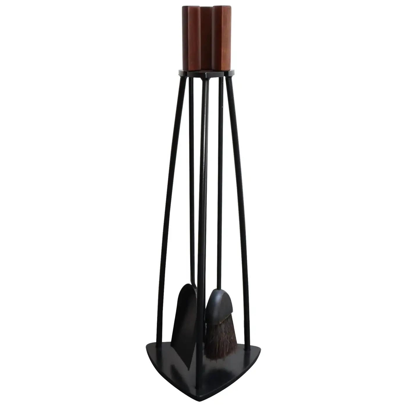 Mid-Century Modern Triangular Guitar Pick Form Fire Tool Set in Walnut and Iron