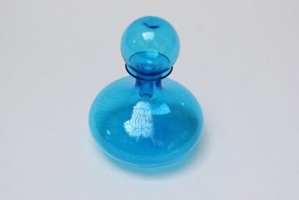 Vintage blown glass lamp in turquoise supported by a brushed brass base (circa 1960s, Italy).