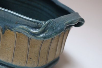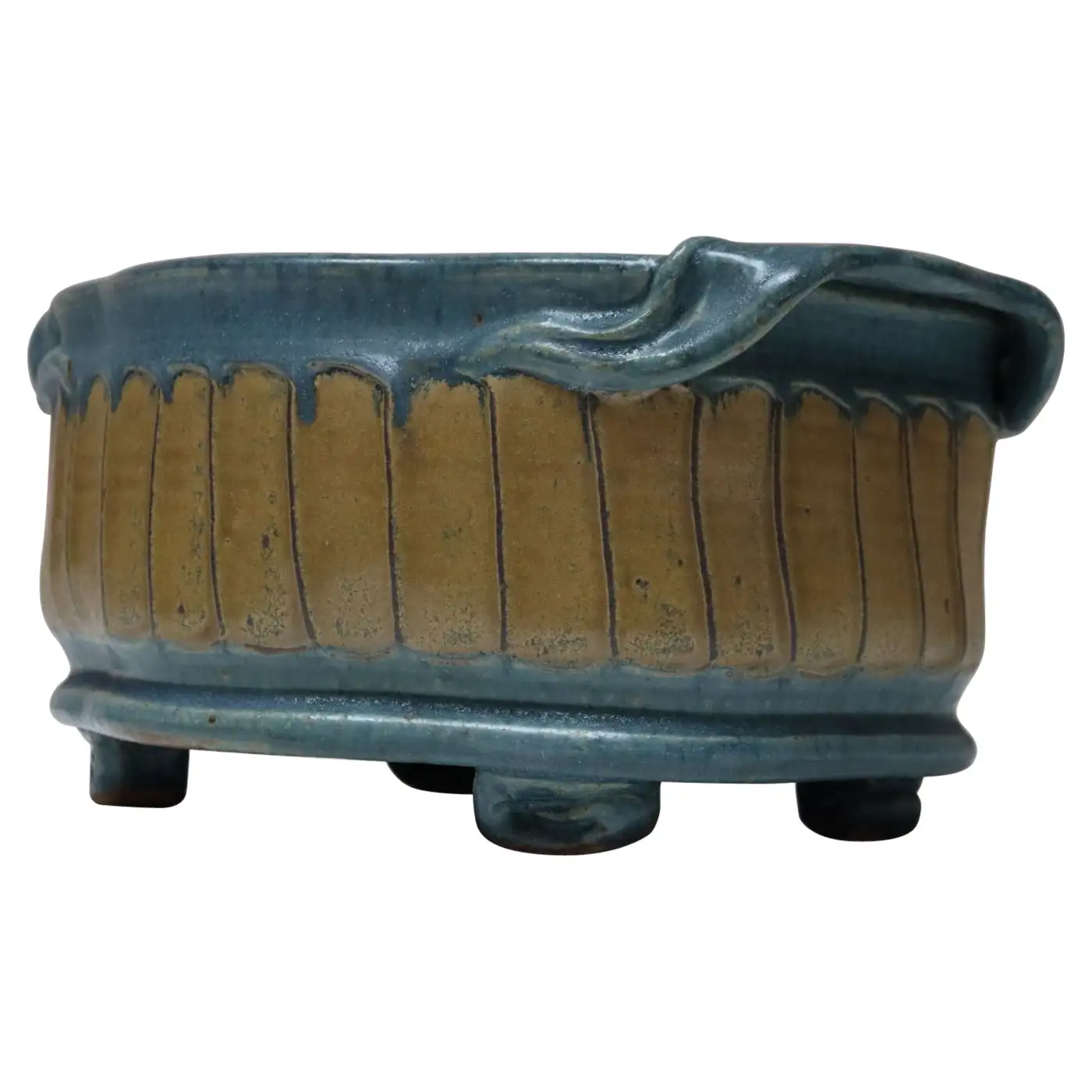 Oblong Vintage Blue and Ochre Studio Pottery Planter Vase by Deanna Nichols