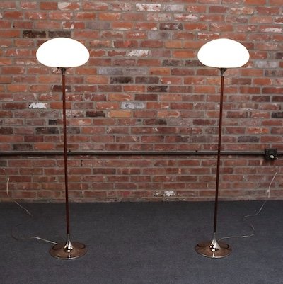 Pair of elegant and iconic floor lamps by Laurel Lamp Co. (ca. 1960s, Newark, NJ, USA).