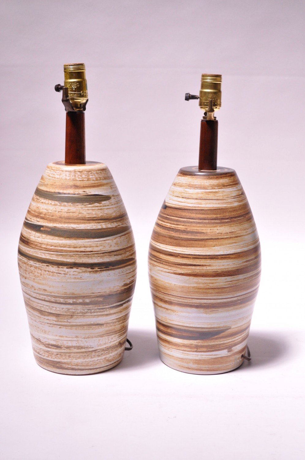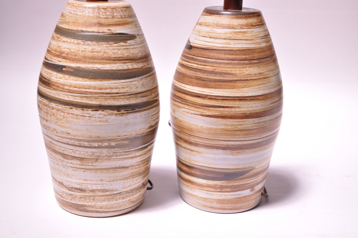 Pair of Martz for Marshall Studios Earth-Tone Swirl Ceramic Lamps