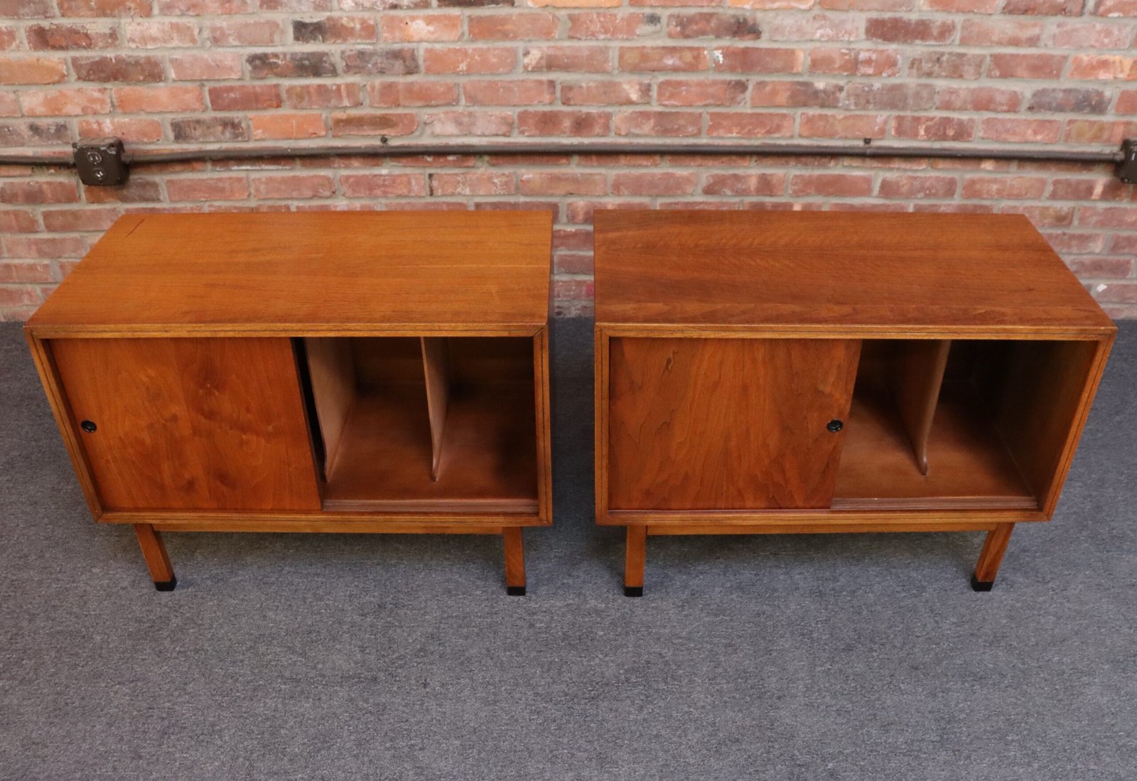 Pair of Mid-Century American Modern Walnut Record Cabinets by Lane
