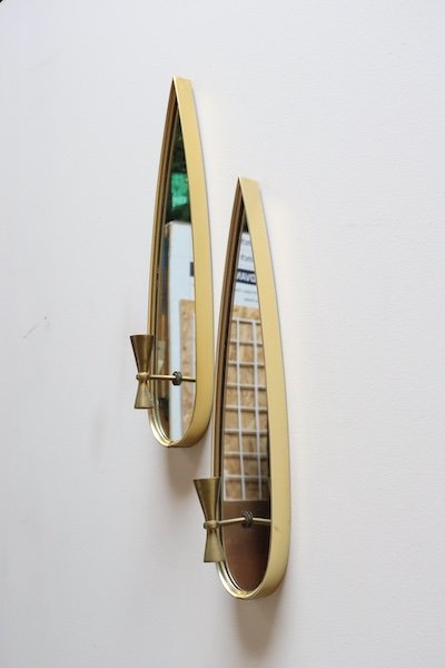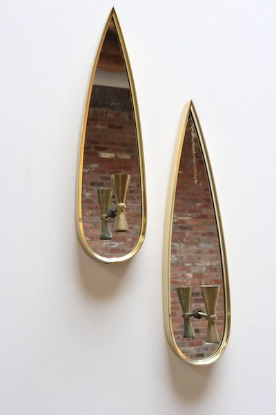 Pair of Mid-Century Modern Teardrop-Form Aluminum and Brass Candle Wall Sconces