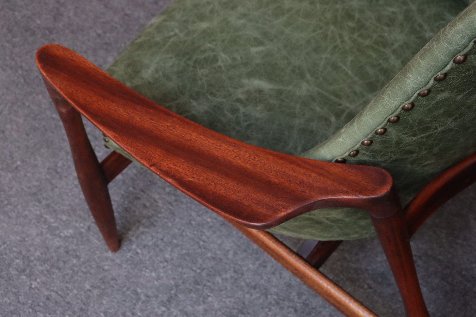 Pair of Scandinavian Modern Sculptural Walnut and Leather Petite Lounge Chairs