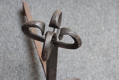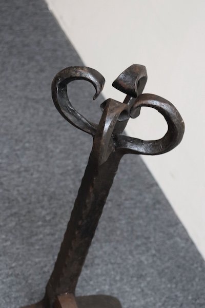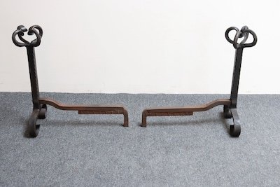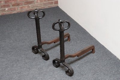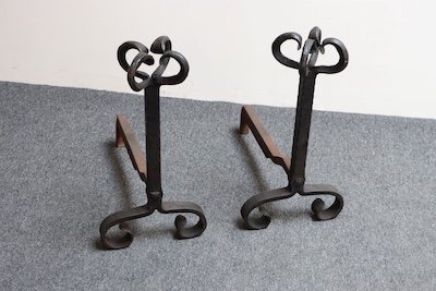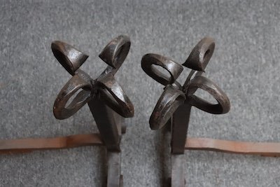 Due to the hand-forged nature of the andirons, there are slight aesthetic and size disparities between the tops.