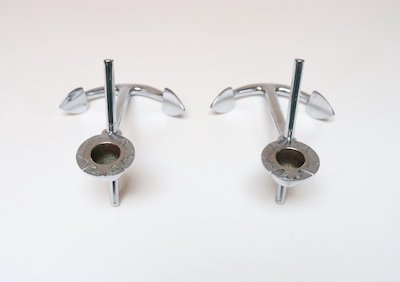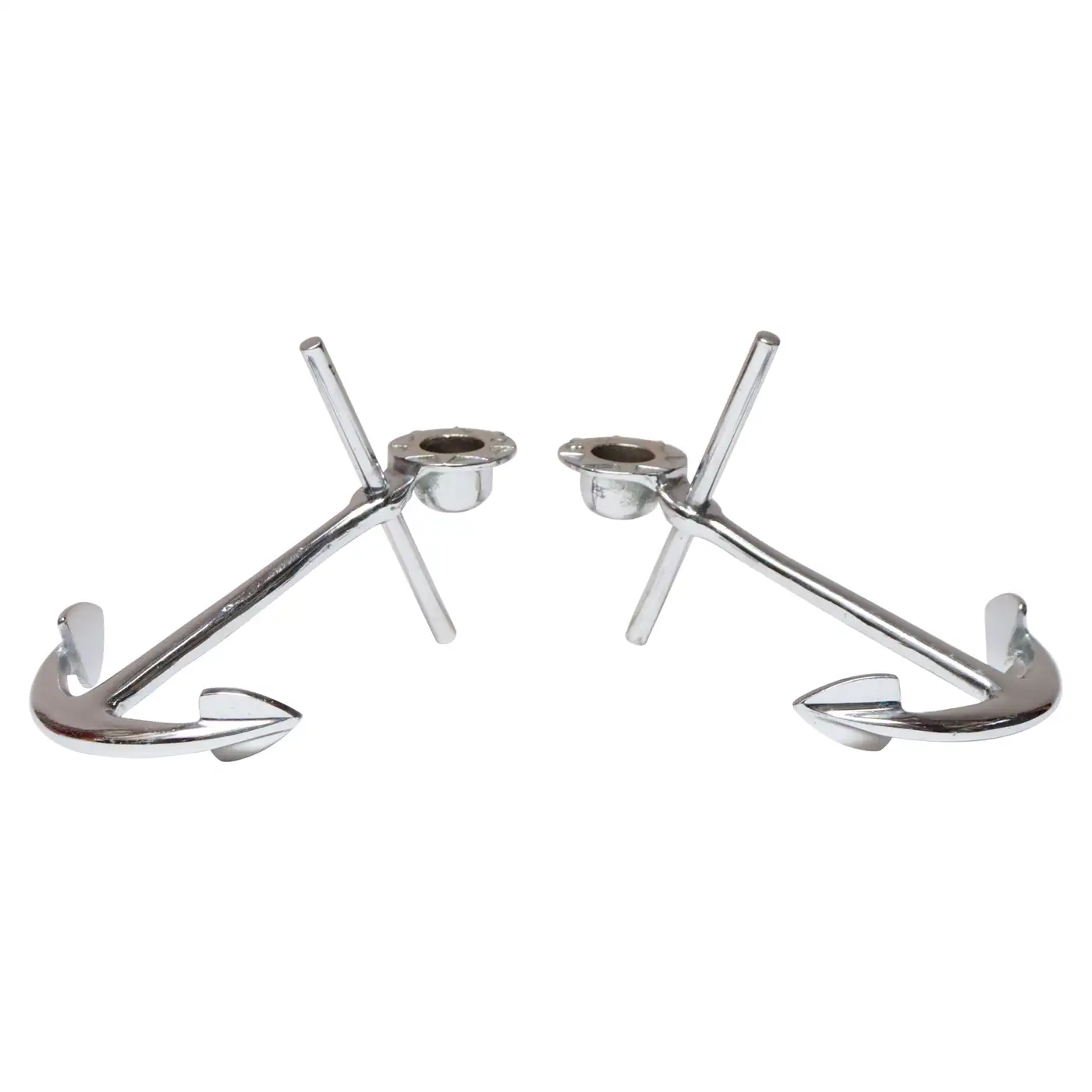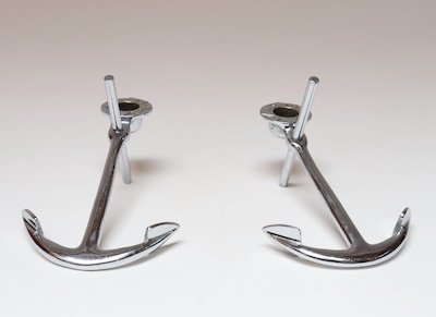 Pair of chrome “anchor” candleholders (ca. 1960s, USA).