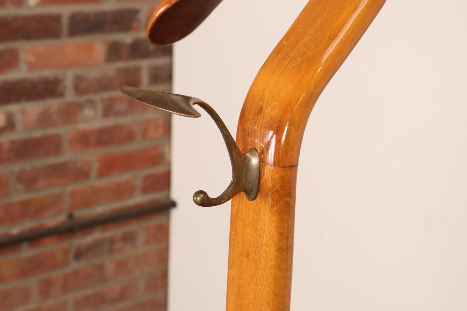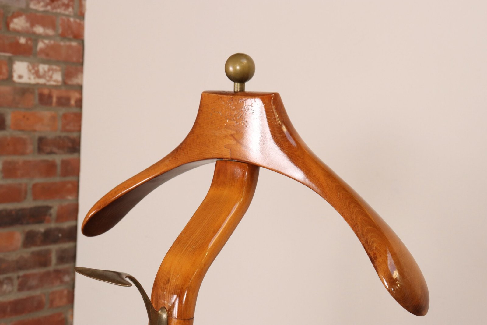 Sculptural Italian Modernist Beech and Brass Valet by Fratelli Reguitti