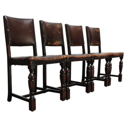 Set of Six Mid-Century Italian Dining Chairs with Nickel Sabots