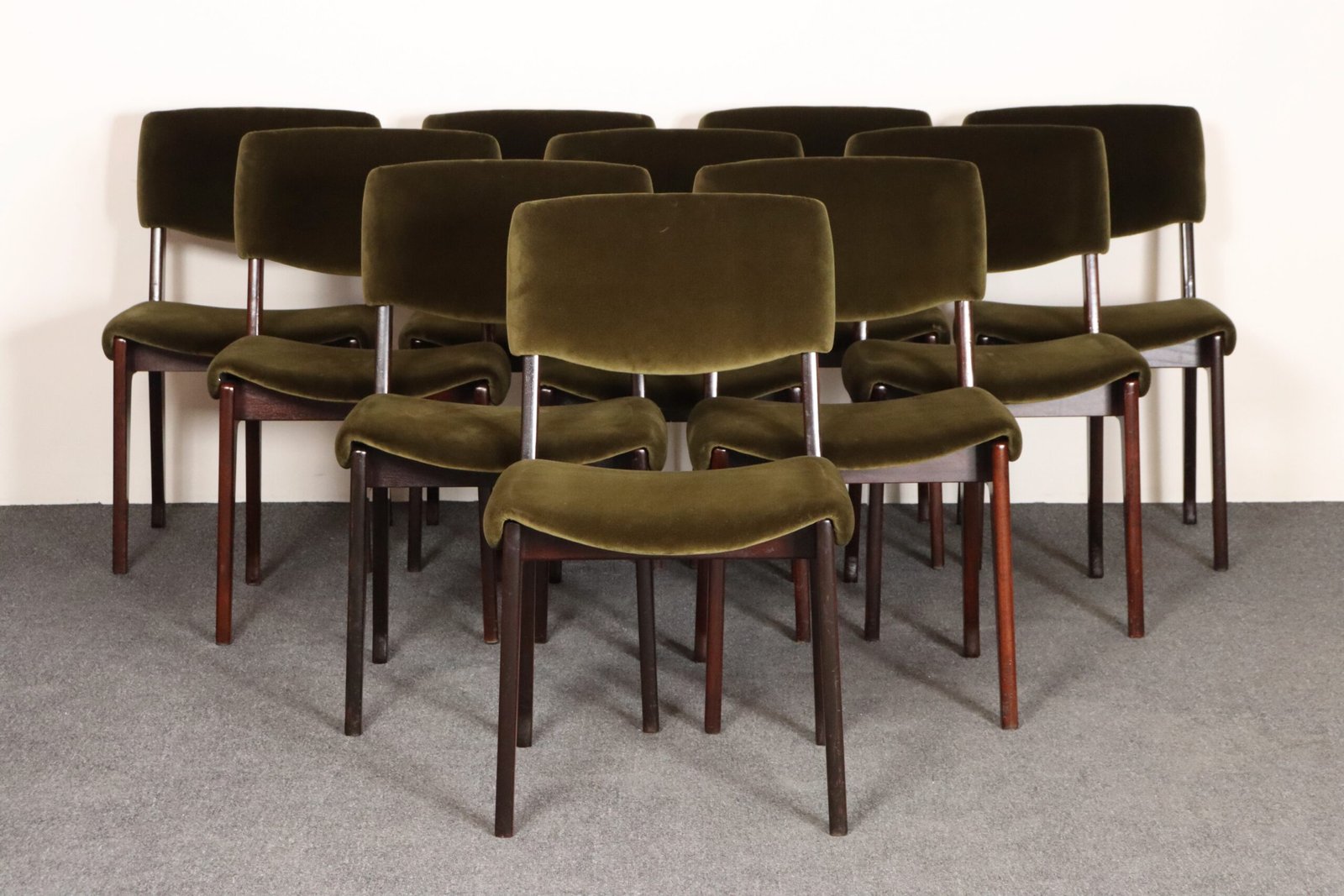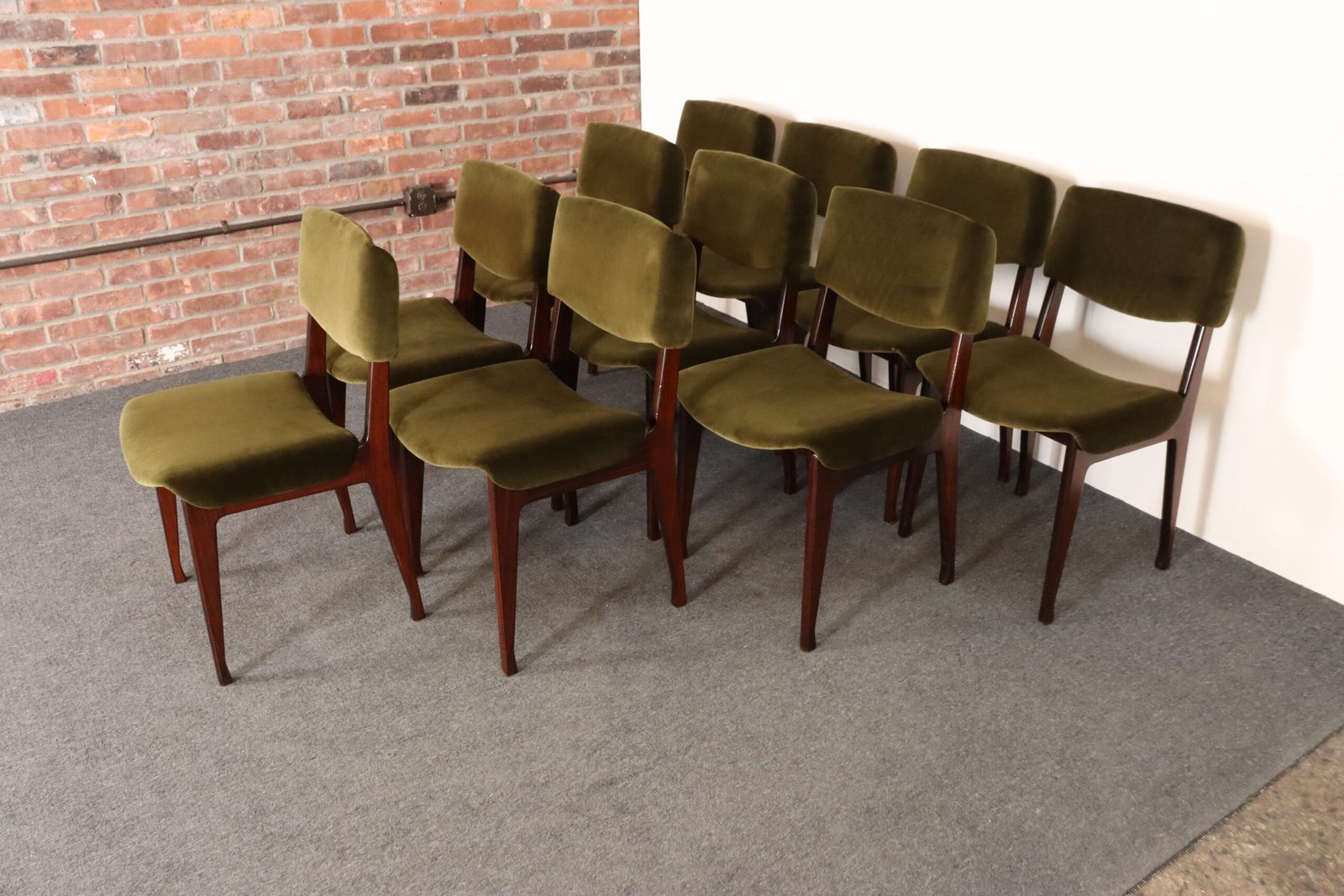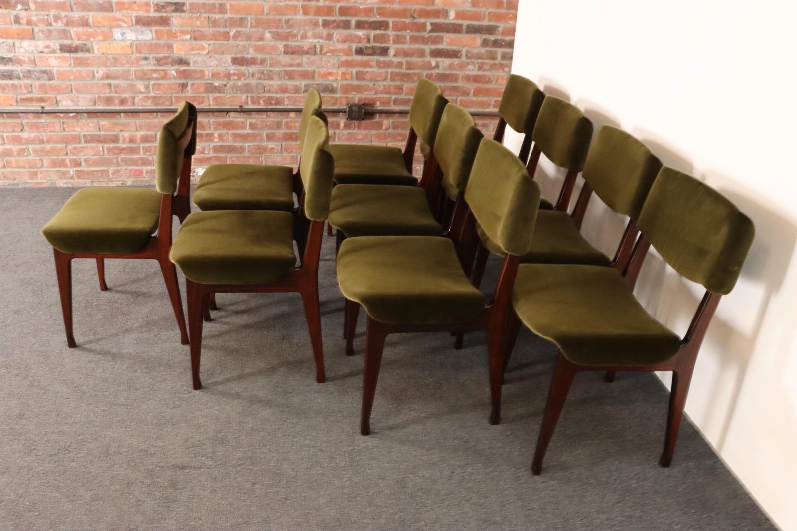 Set of Ten Italian Rosewood and Velvet Dining Chairs by Ico Parisi for M.I.M.