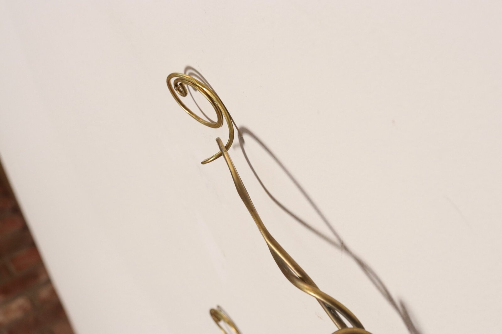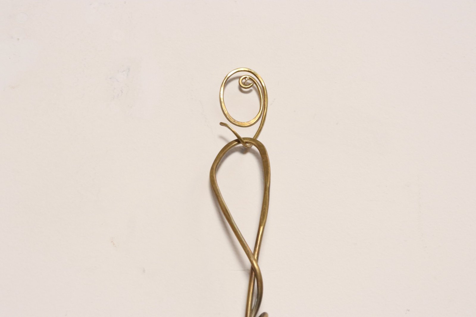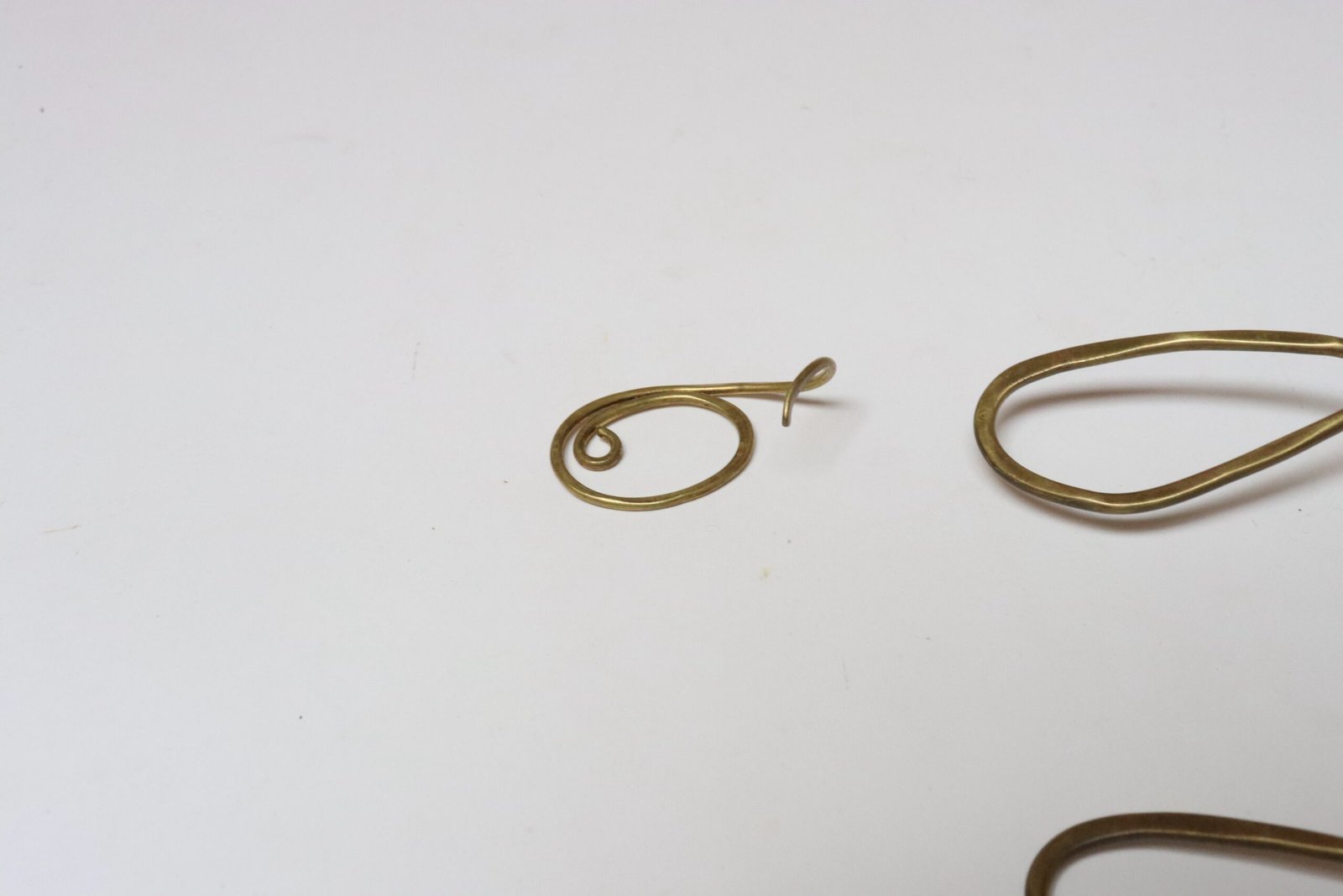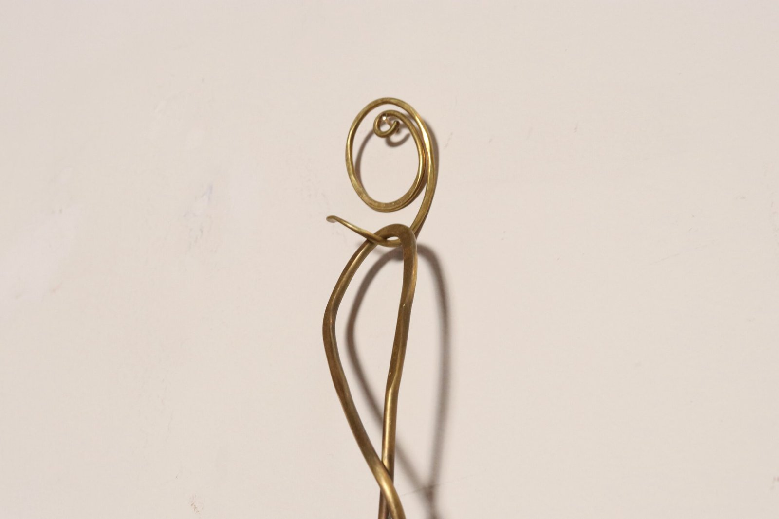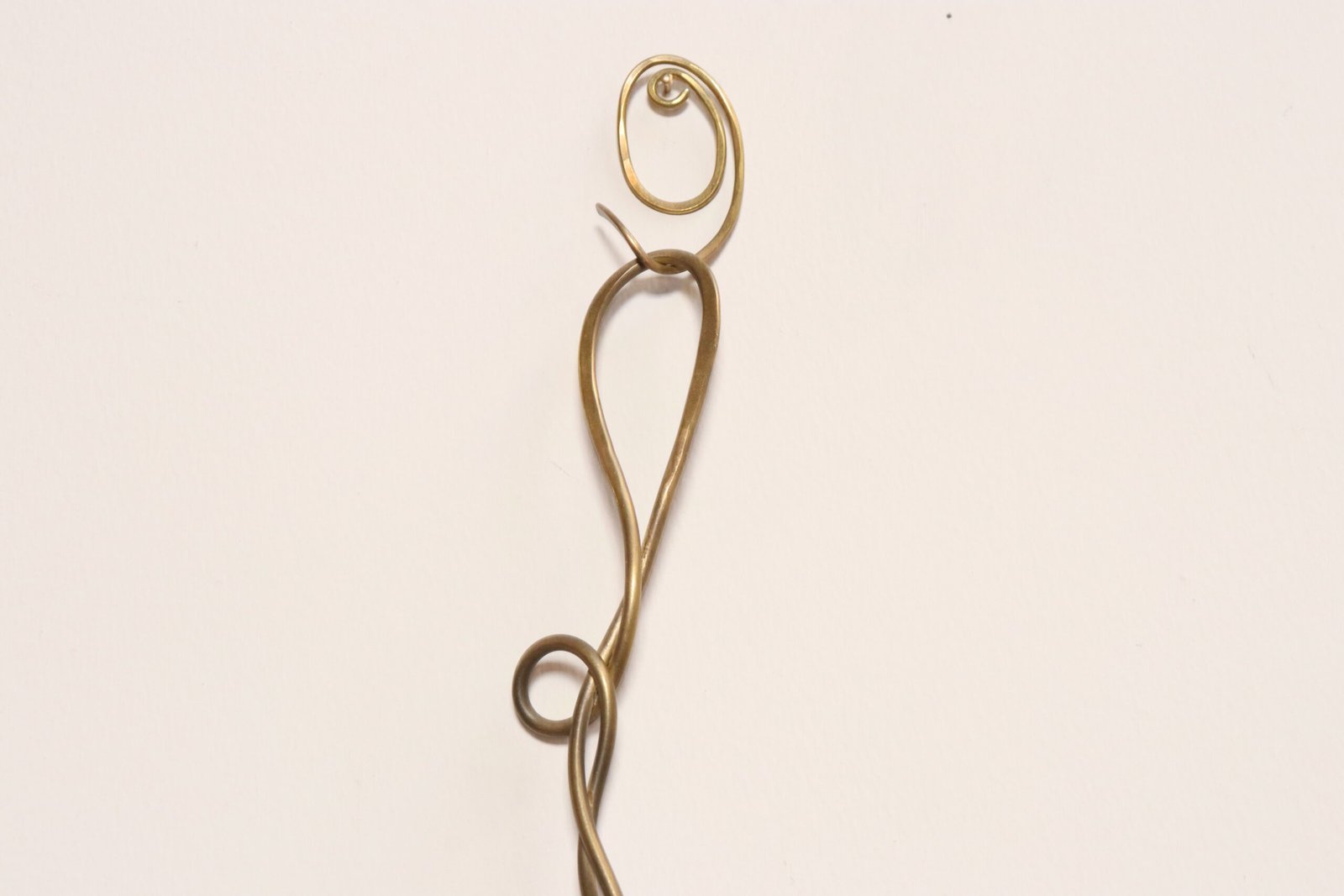 Brutalist-style brass serving pieces including ladle, spoon, and fork (ca. 1970s, likely Austrian).