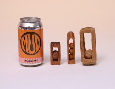 Naïve style lacking refinement -top and bottom of largest whimsy are not flat and do not rest evenly on surfaces, and the structures themselves (‘cages’) lack perfect symmetry.