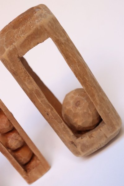 Be the first to review “Set of Three Folk Art Petite Handcarved Whimsy Ball in Cage Sculptures”