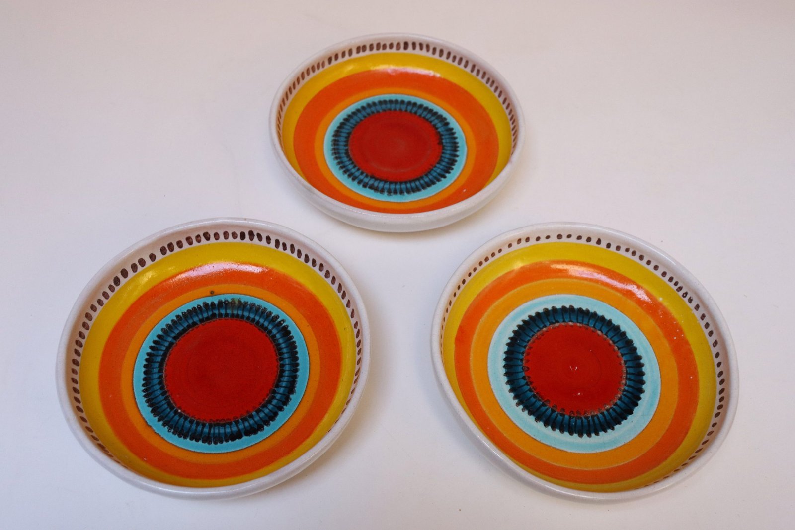 Set of three hand-painted ceramic decorative bowls by Sicilian aristocrat turned artist, Giovanni De Simone (ca. 1960s, Italy).