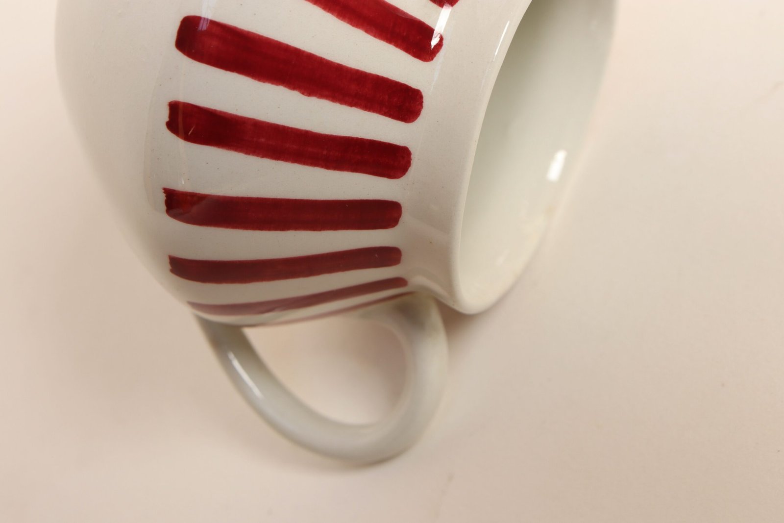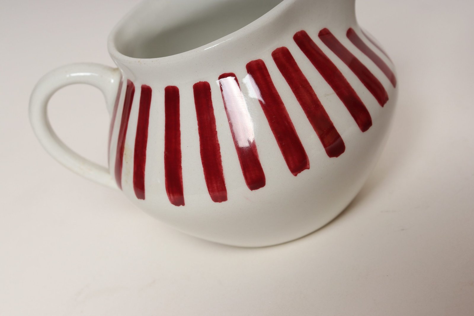 Stylish set with rounded forms and attractive, hand-painted red stripe/line motif.