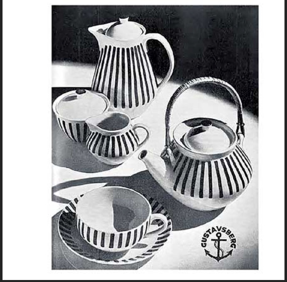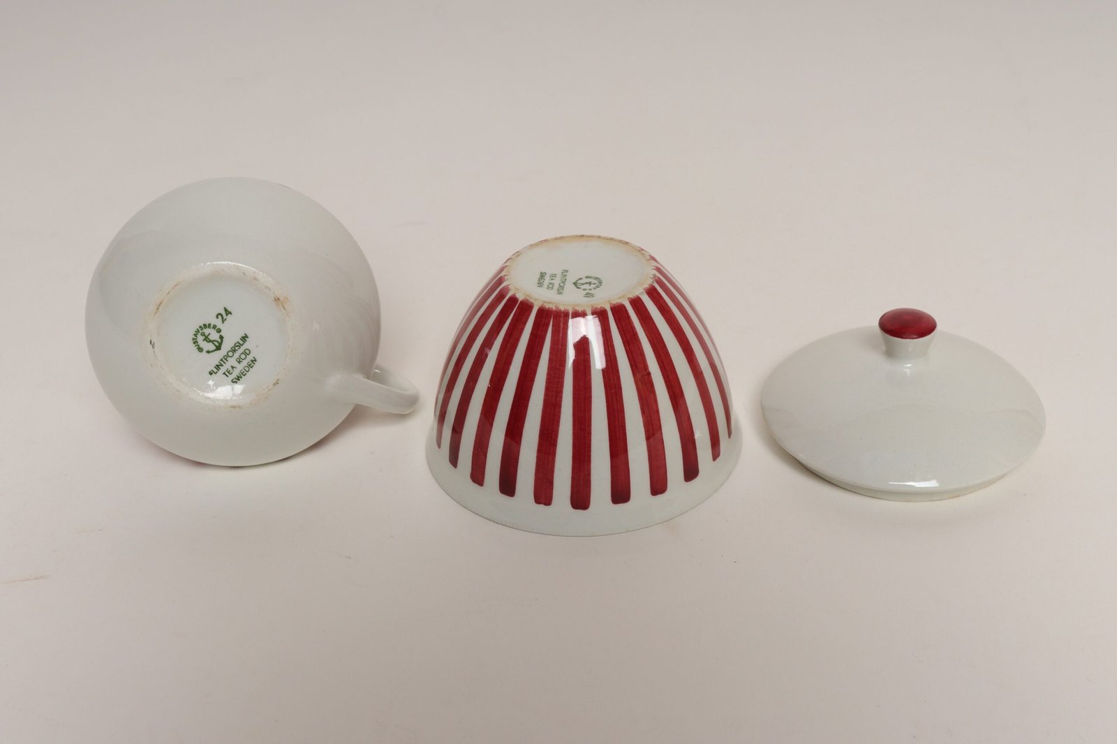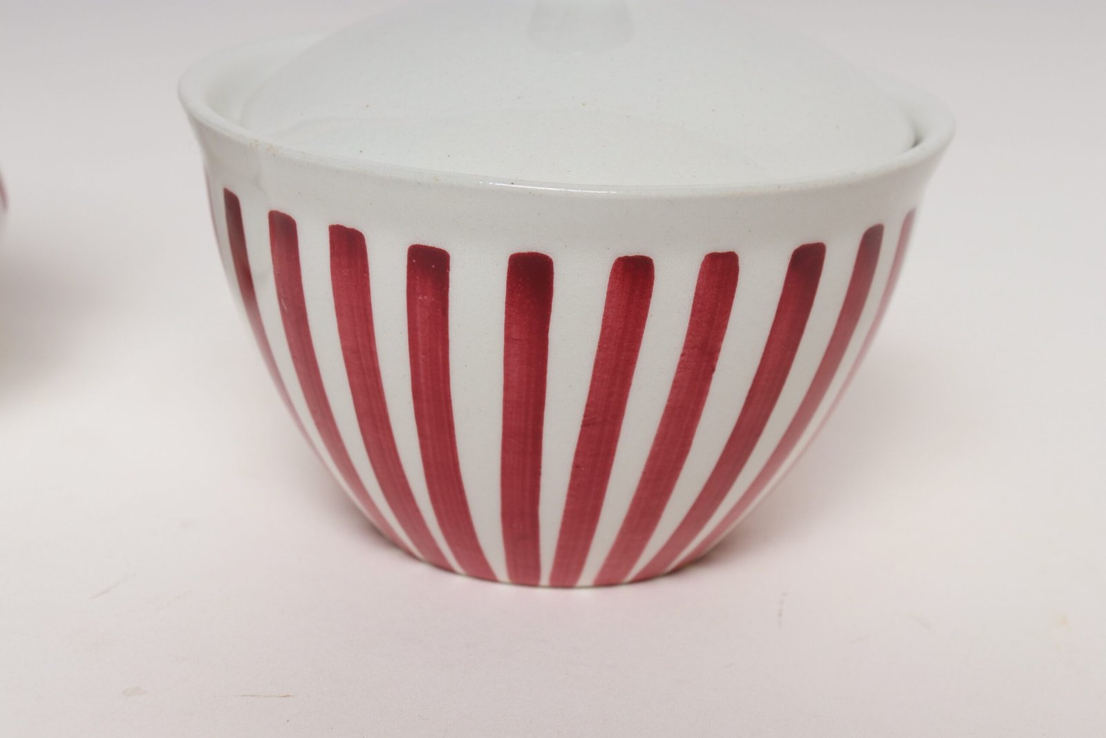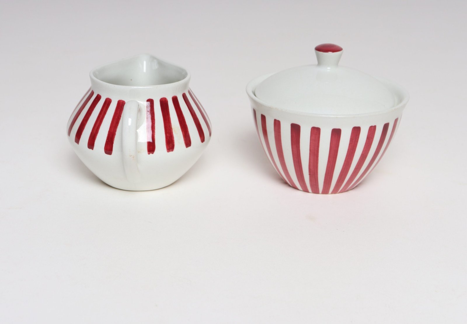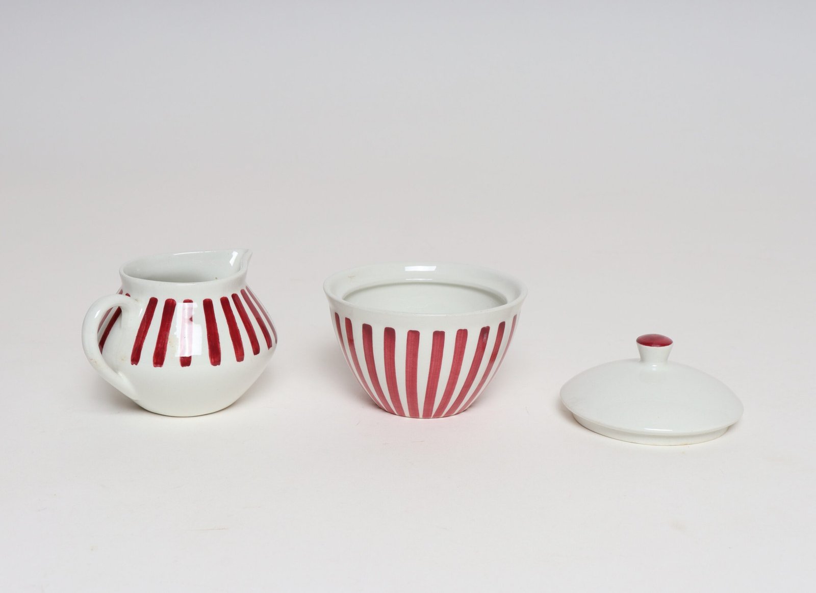 Swedish Ceramic Red Stripe Sugar and Creamer by Karin Björquist for Gustavsberg
