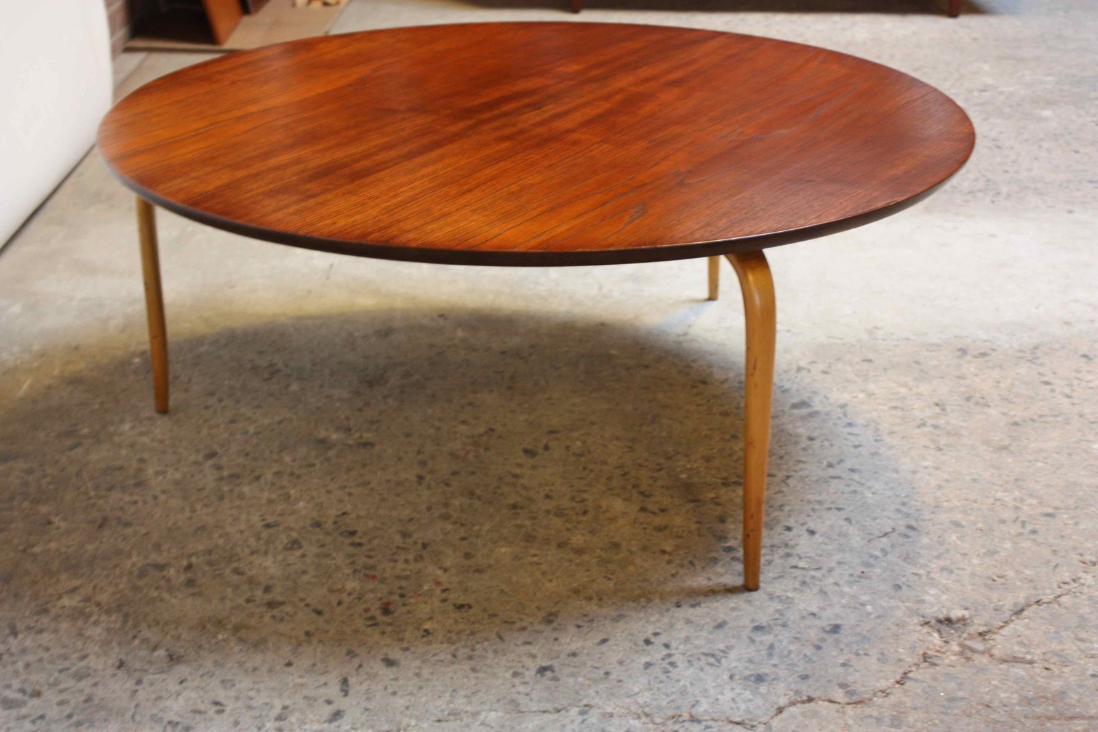 Swedish Teak and Birch Round ‘Annika’ Coffee Table by Bruno Mathsson