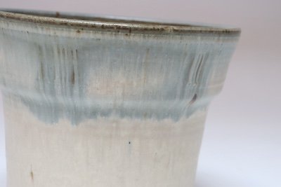 Vintage Beige and Light Blue Studio Pottery Planter Vase by Deanna Nichols