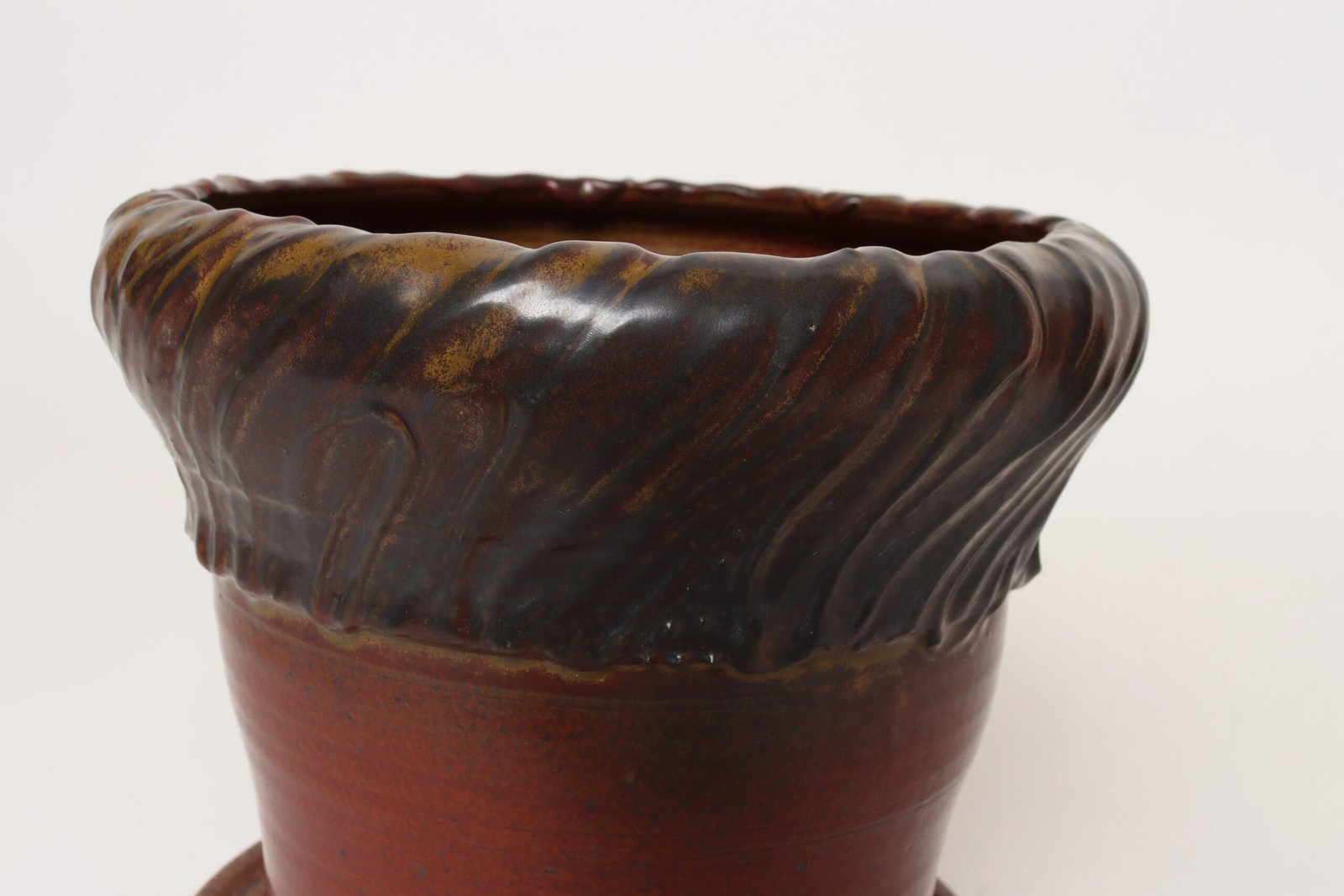 Vintage Crimson and Slate Studio Ceramic Planter with Saucer by Deanna Nichols
