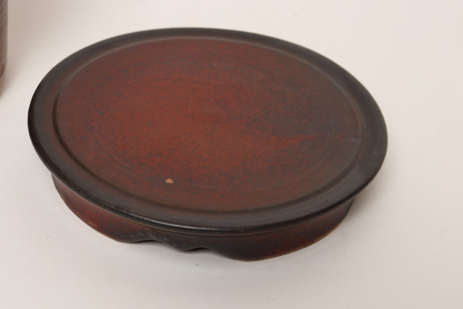 Studio ceramic planter with plate/display stand by ceramicist, Deanna Nichols (b. 1942-2017, Missouri).