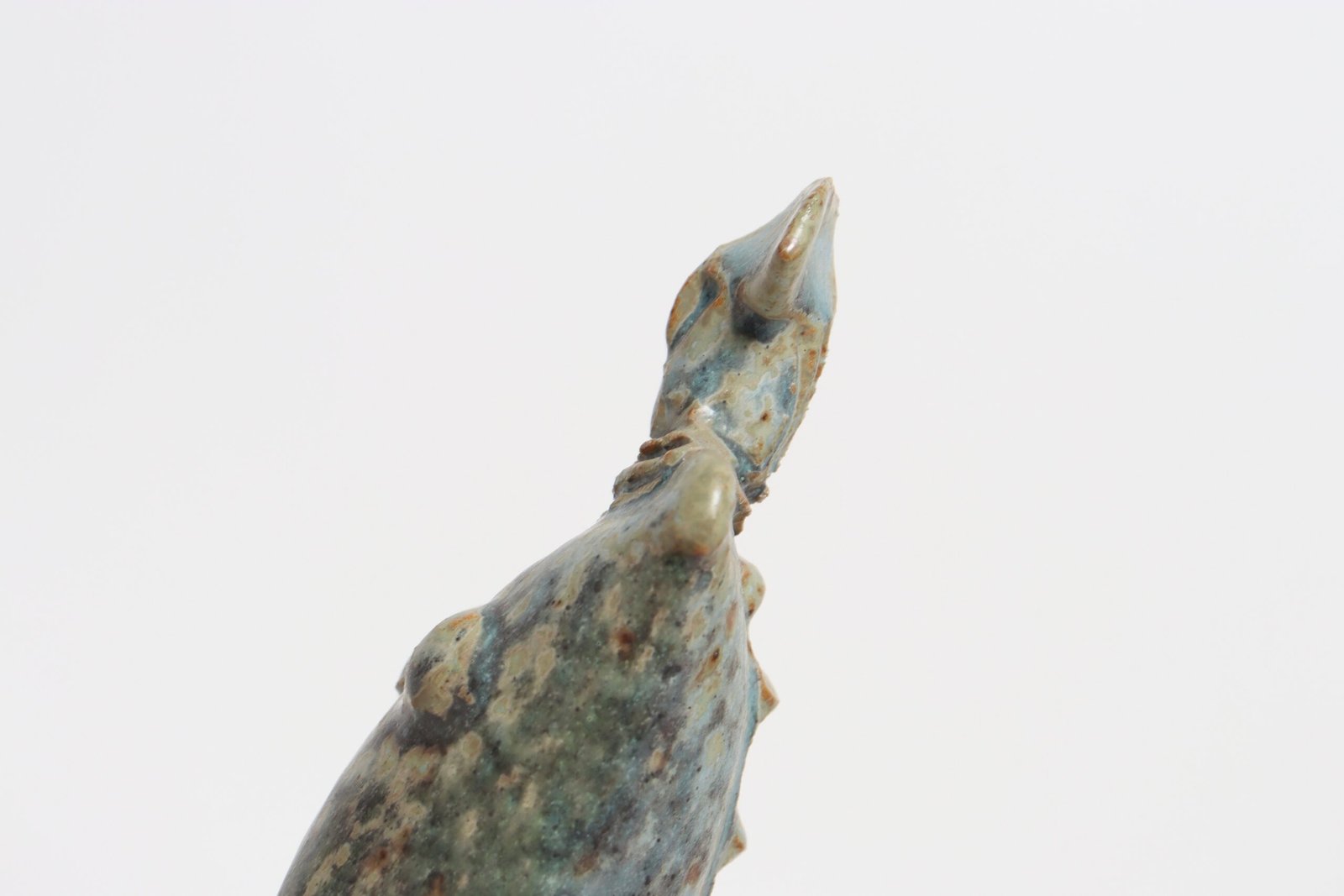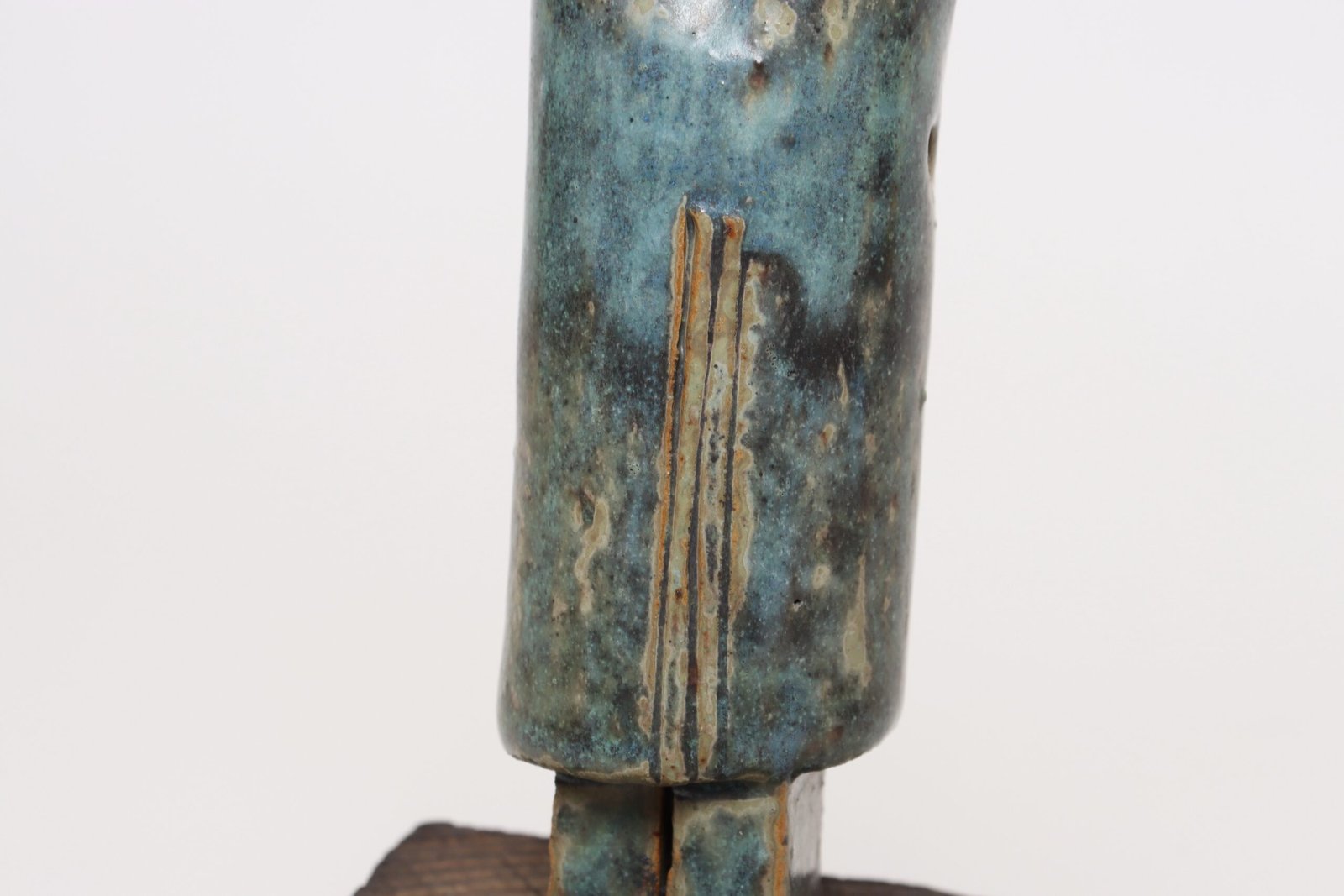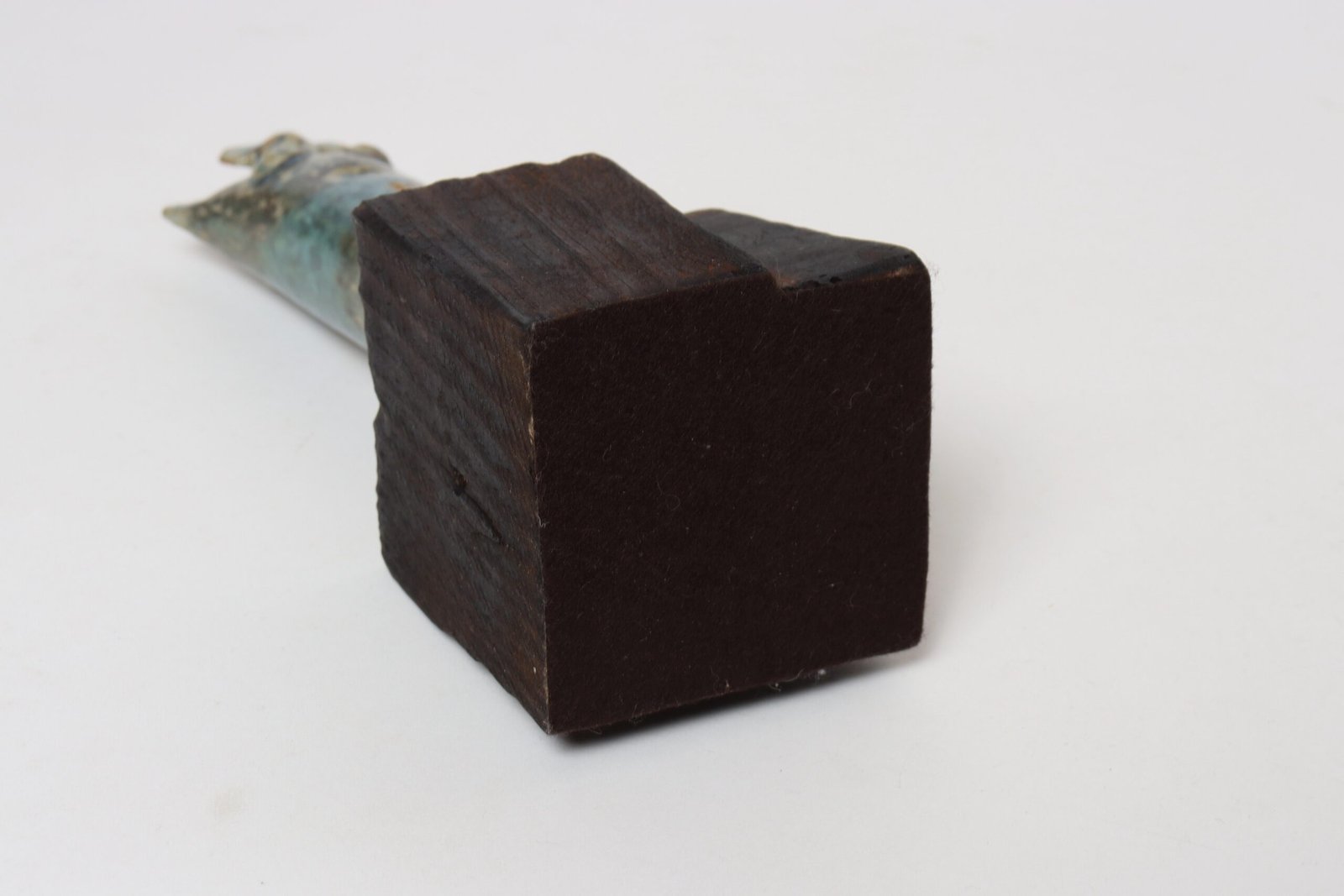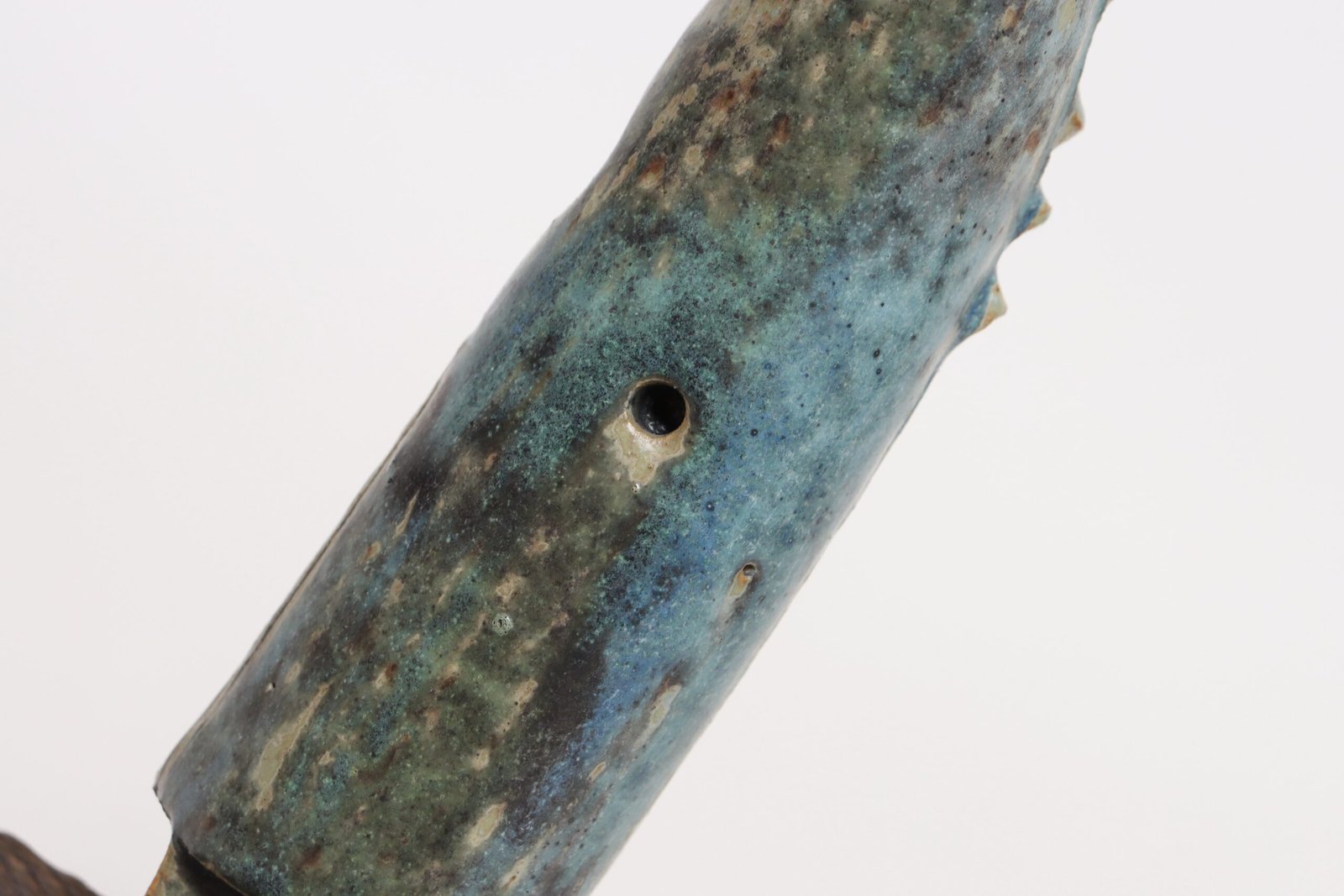 Vent hole present to one side, as shown, to allow trapped air and steam to escape as the clay heats and dries during firing.