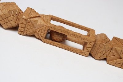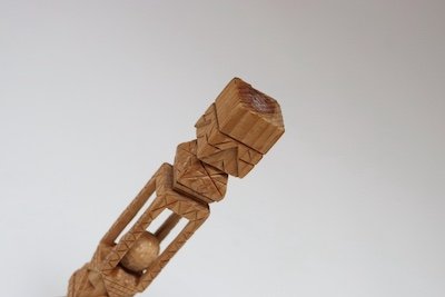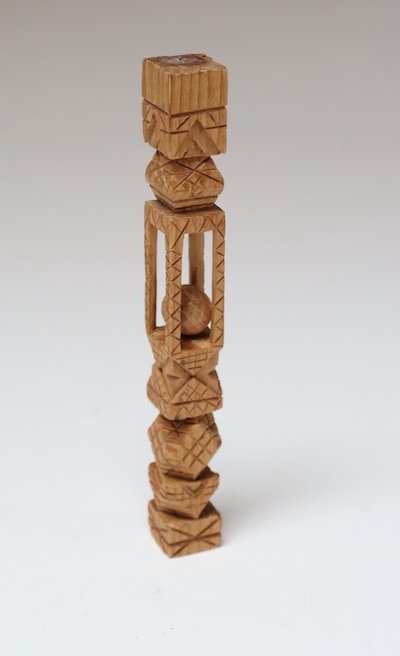 Folk Art whimsy ‘ball in cage’ sculpture whittled from one continuous piece of wood (circa 1940s/50s, USA).