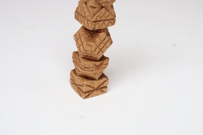 Unusual piece composed of multiple stacked geometric forms with etched ‘x’ and linear motif throughout.