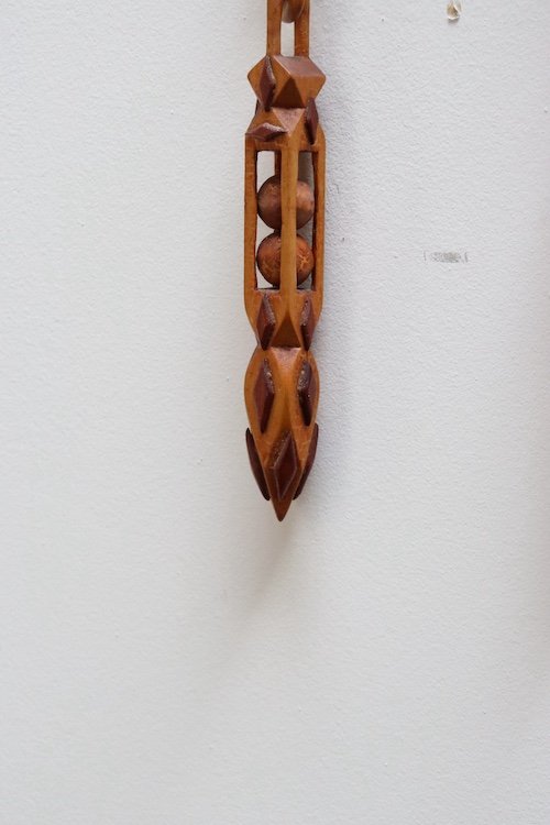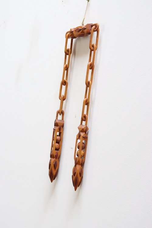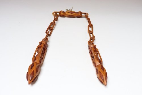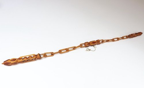 Whimsical Folk Art chain whittled from one continuous piece of wood (ca. 1940s, USA).