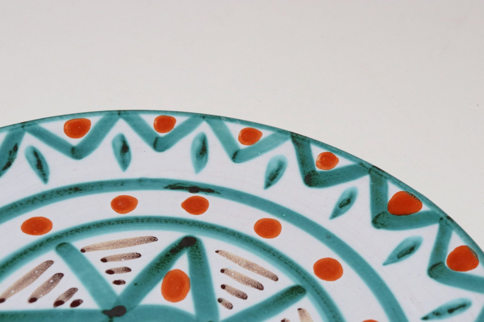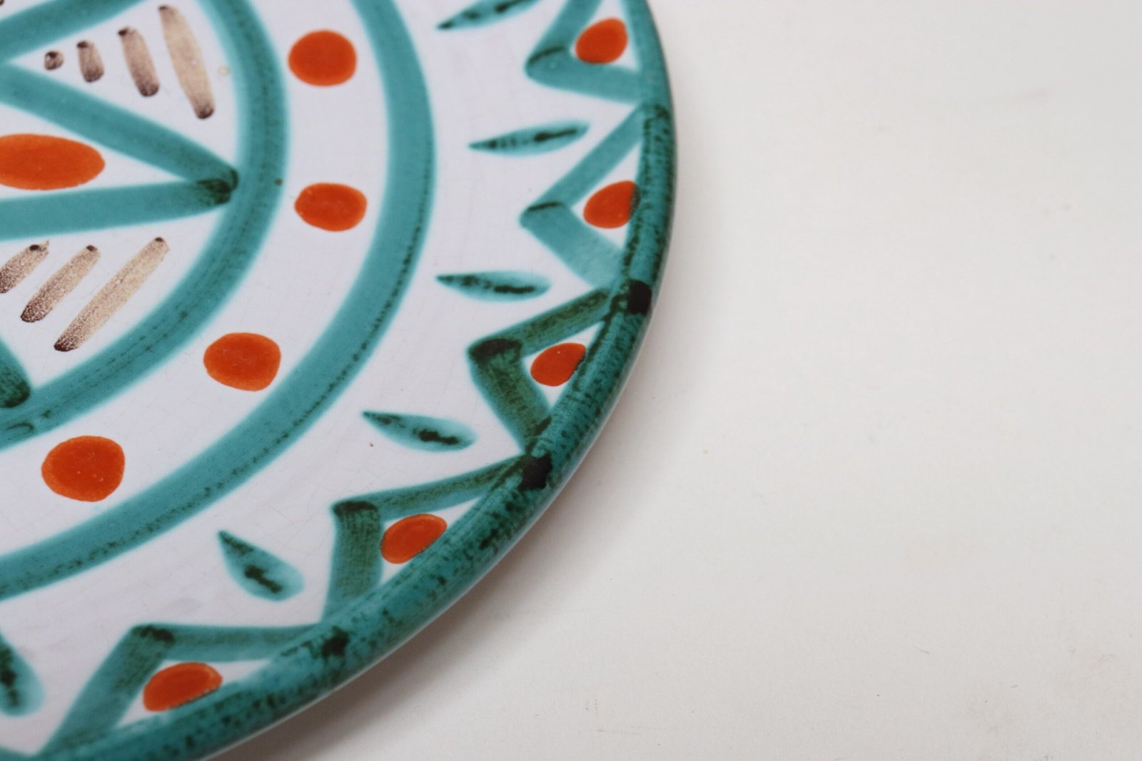 Attractive colors present – teal, white, orange, and brown (similar palette employed by another notable Vallauris ceramicist, Robert Picault).