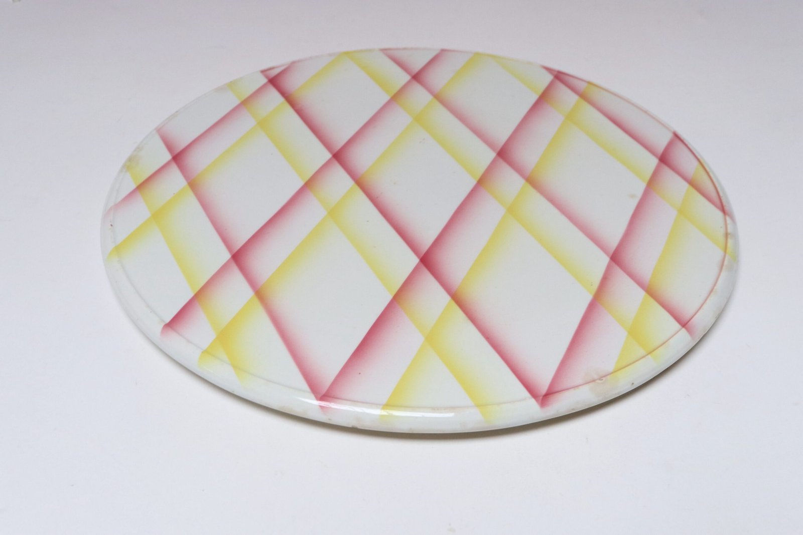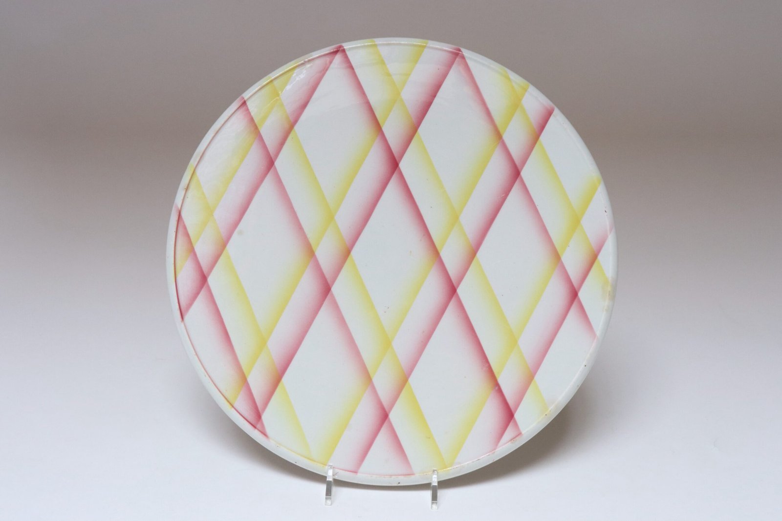 Vintage German Ceramic Cake or Pie Plate / Round Trivet With Diamond Argyle / Lattice Pattern