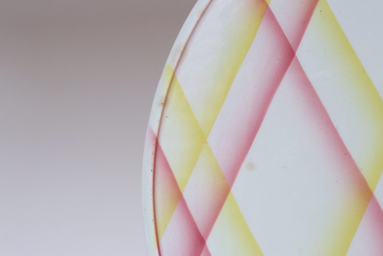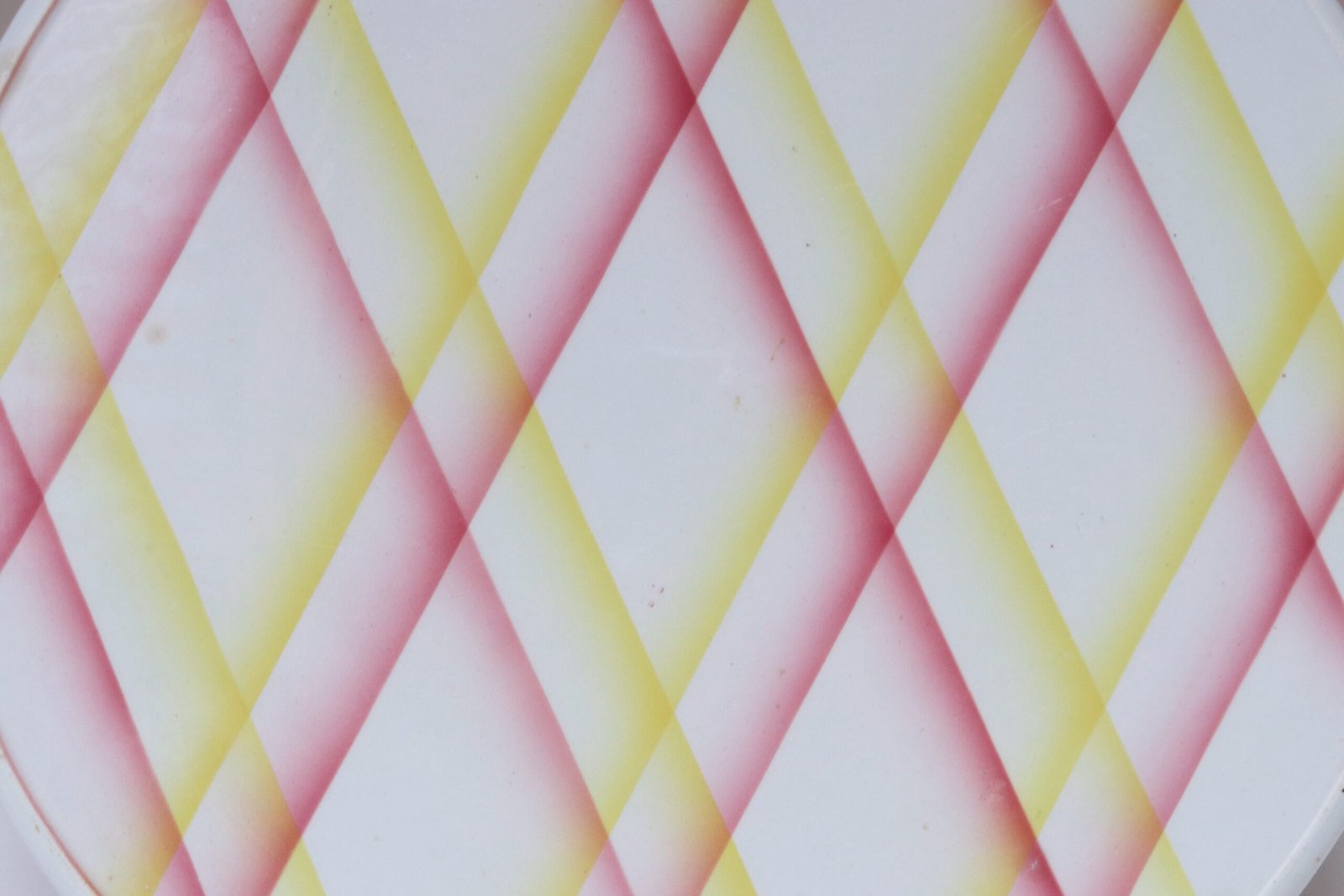 Features an attractive argyle/lattice/diamond plaid pattern in rose pink and yellow.