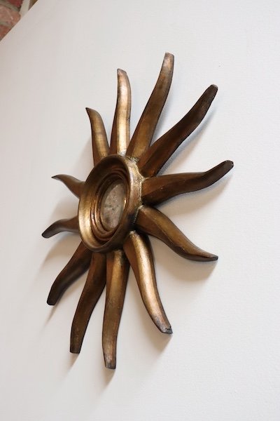 Impressive sunburst / starburst / pinwheel form wall mirror (ca. late 1930s-early 1940s, USA).