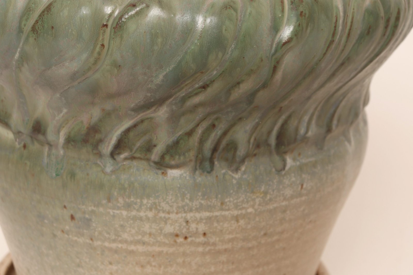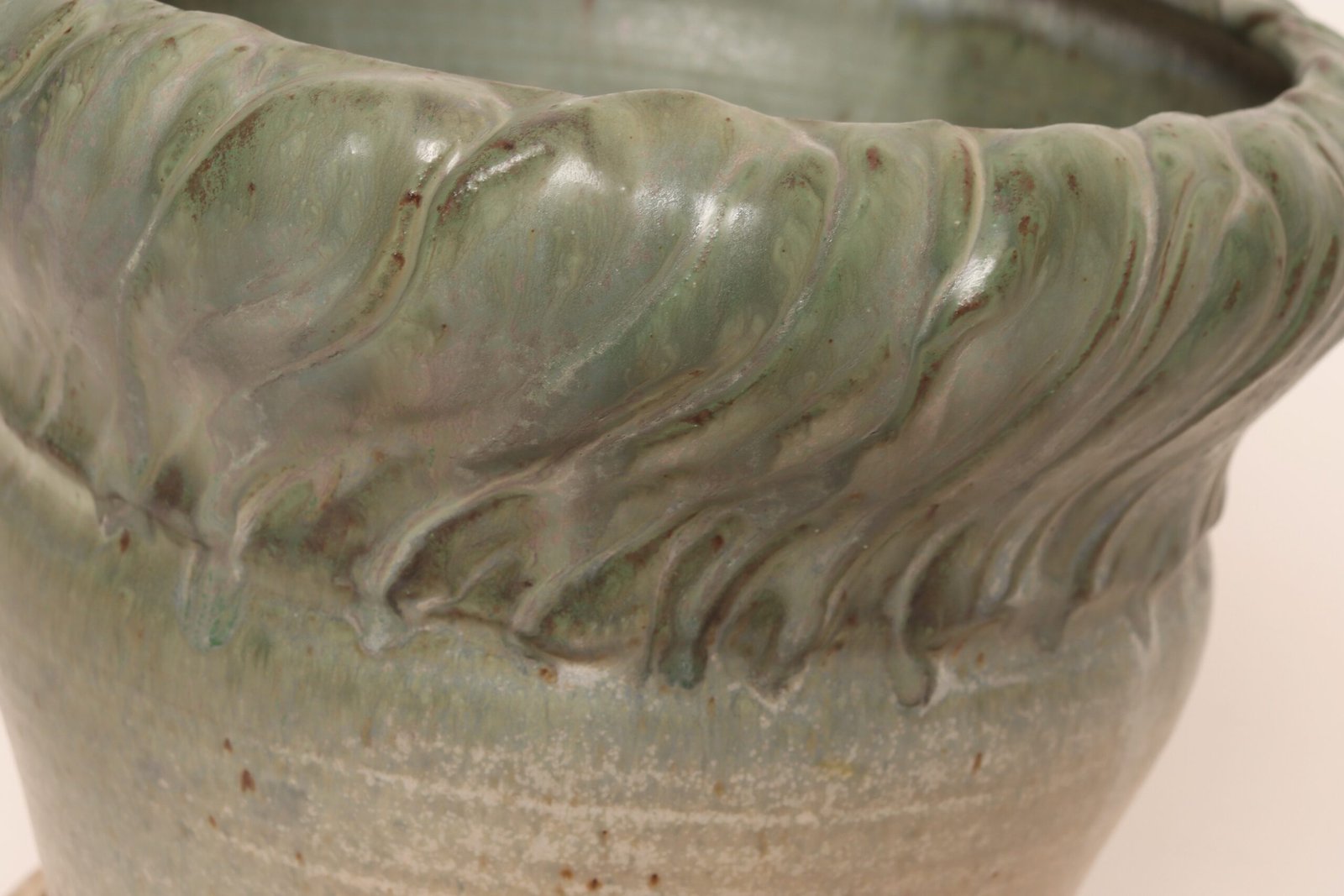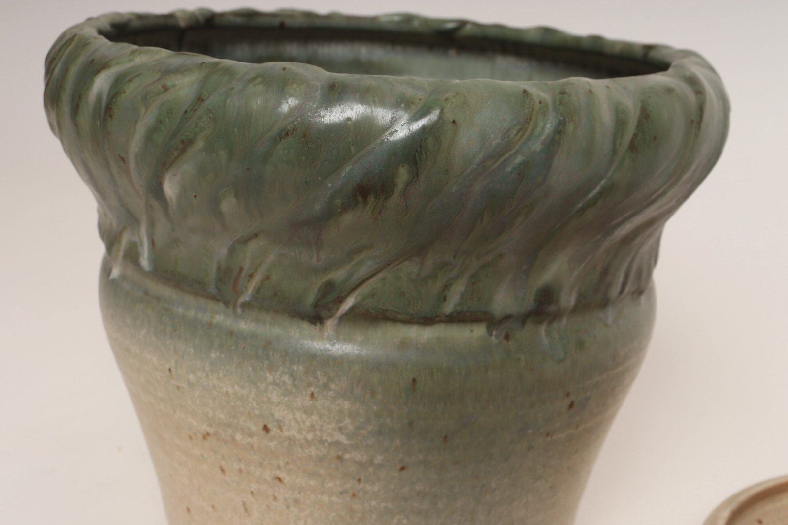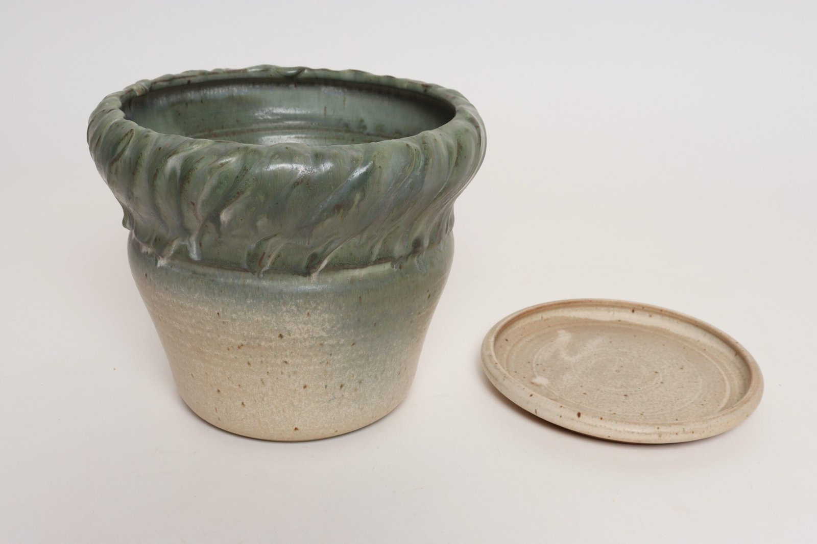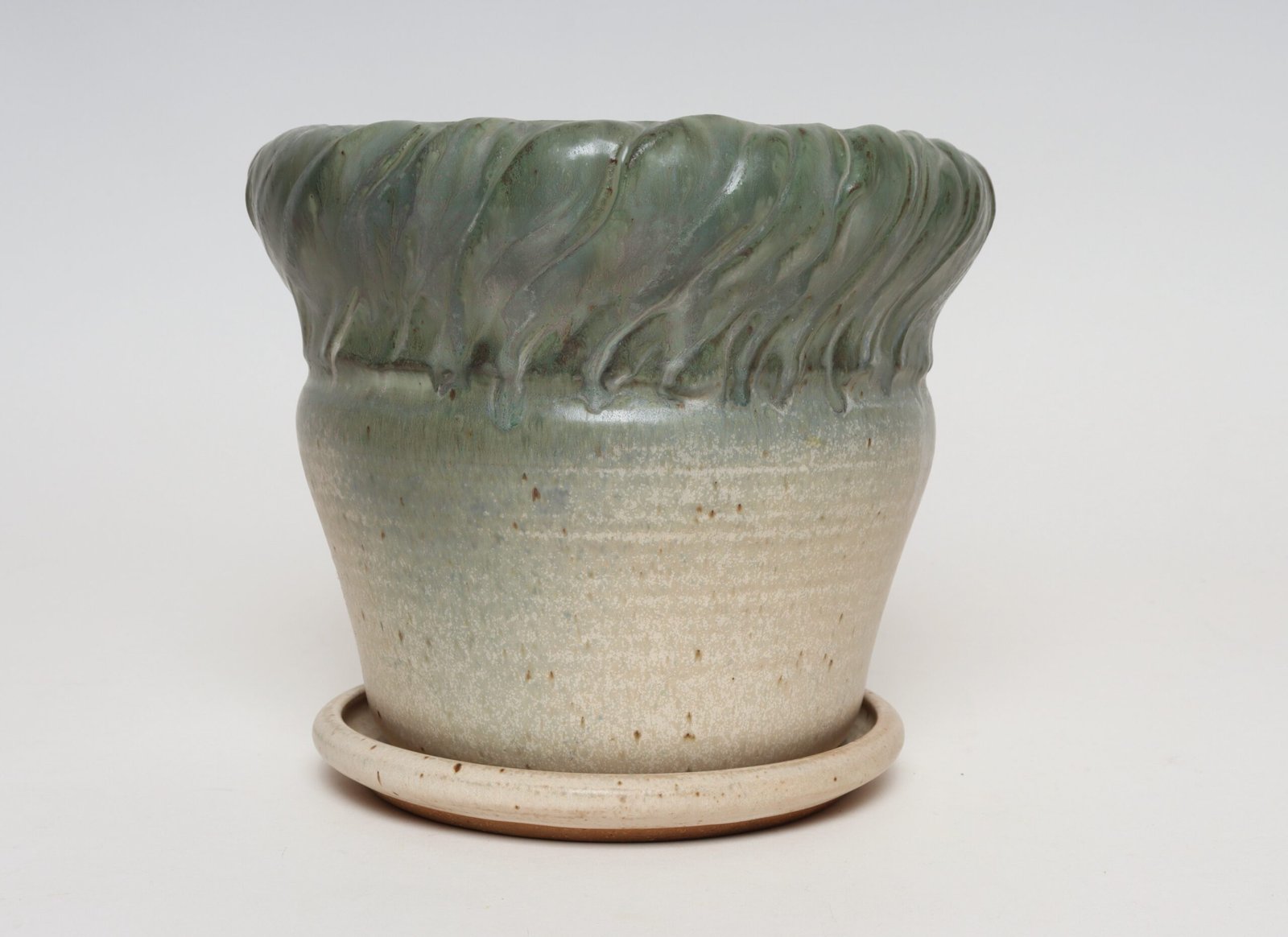 Vintage Green and Beige Speckled Ceramic Planter with Saucer by Deanna Nichols