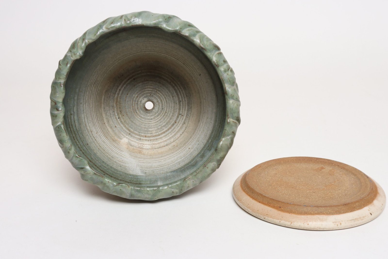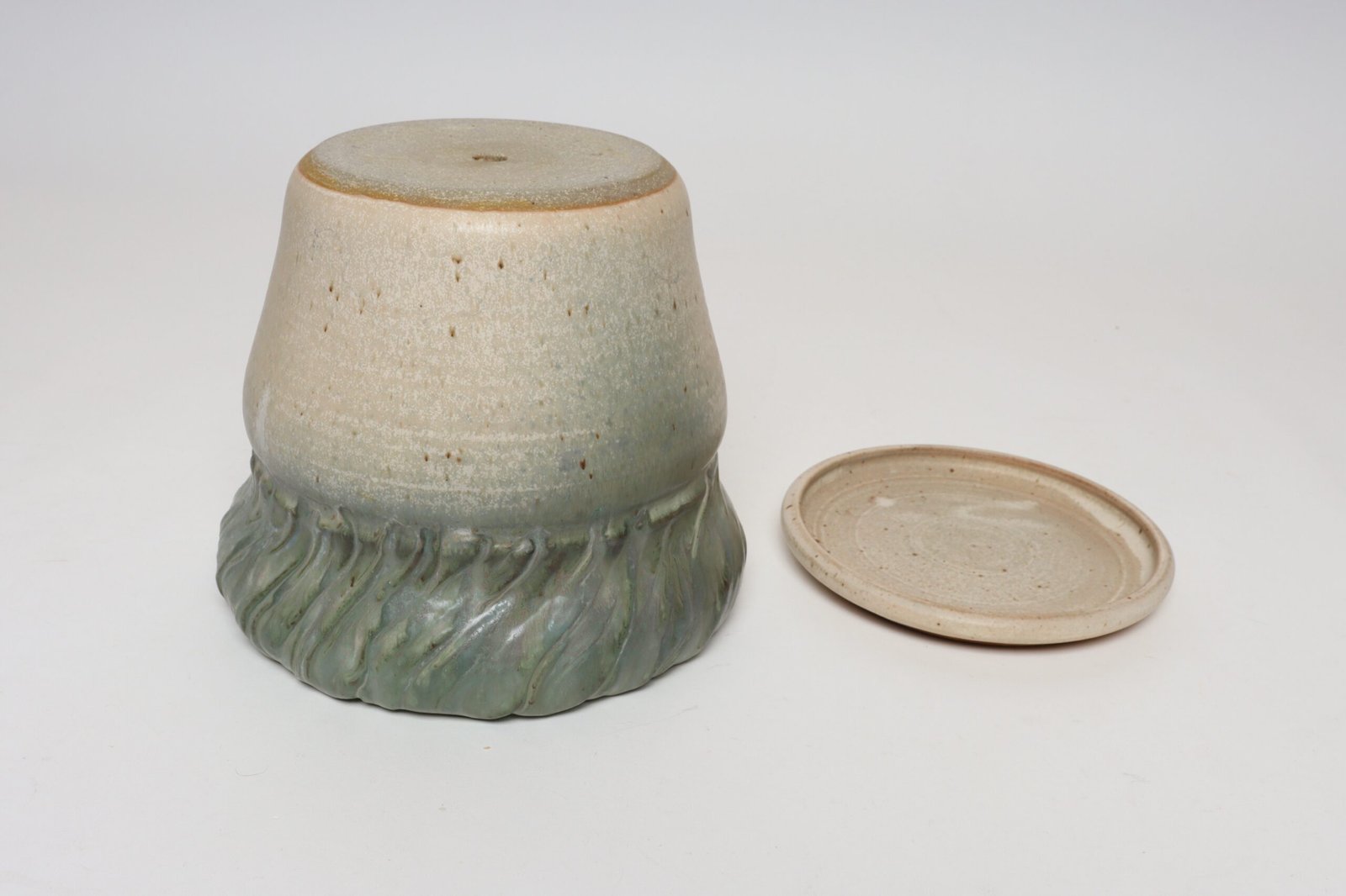 Studio ceramic planter with drainage hole and saucer/plate by ceramicist, Deanna Nichols (b. 1942-2017, Missouri).