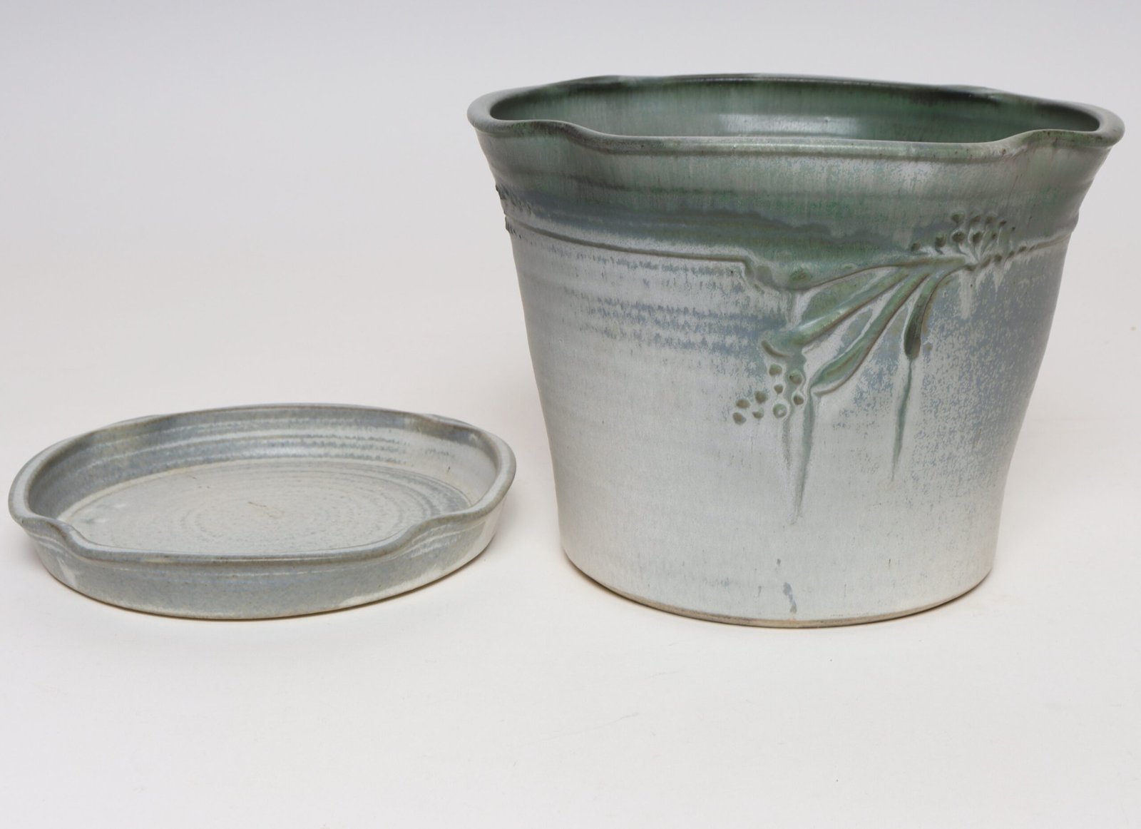 Vintage Green Matte Glaze Botanical Ceramic Planter with Plate by Deanna Nichols