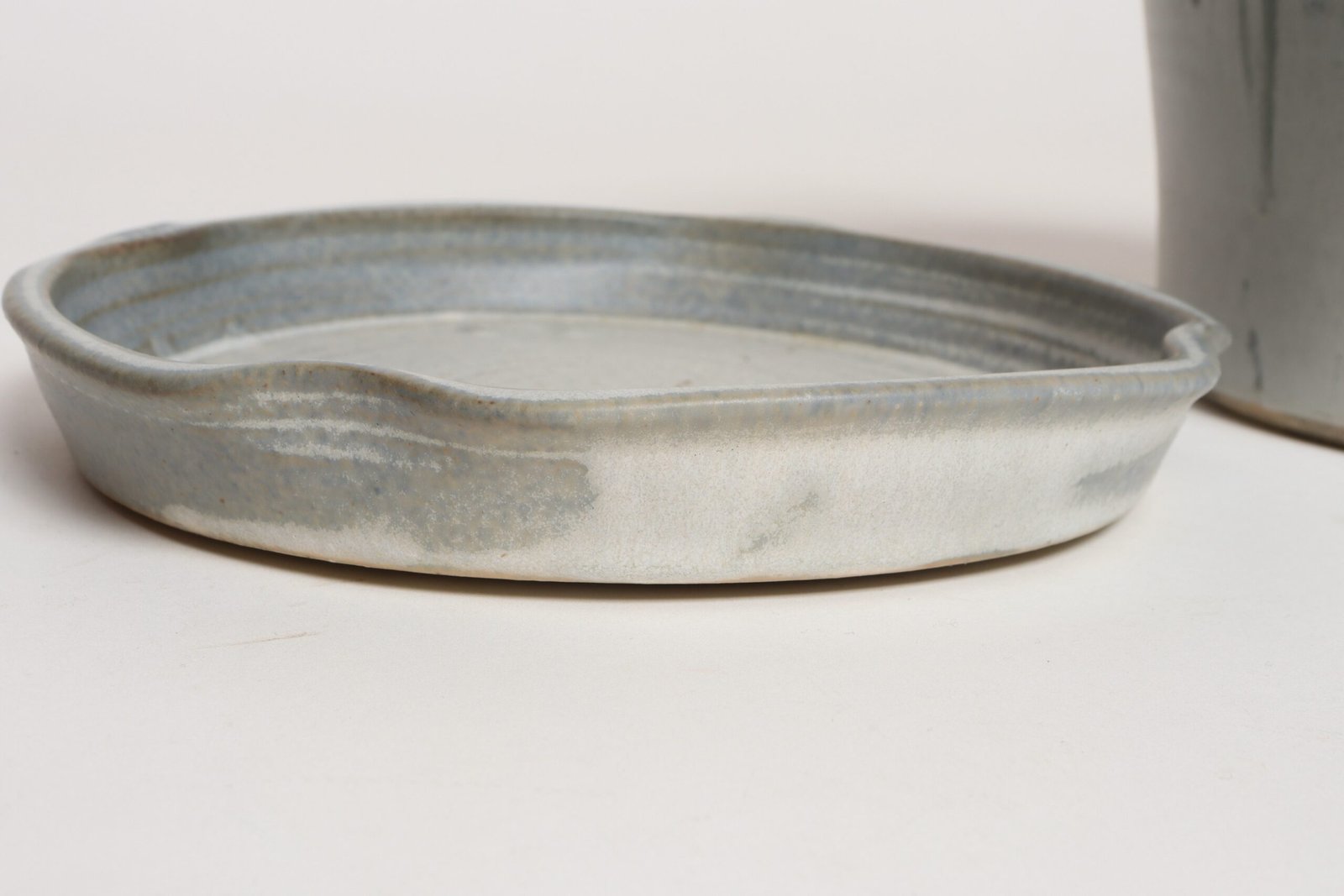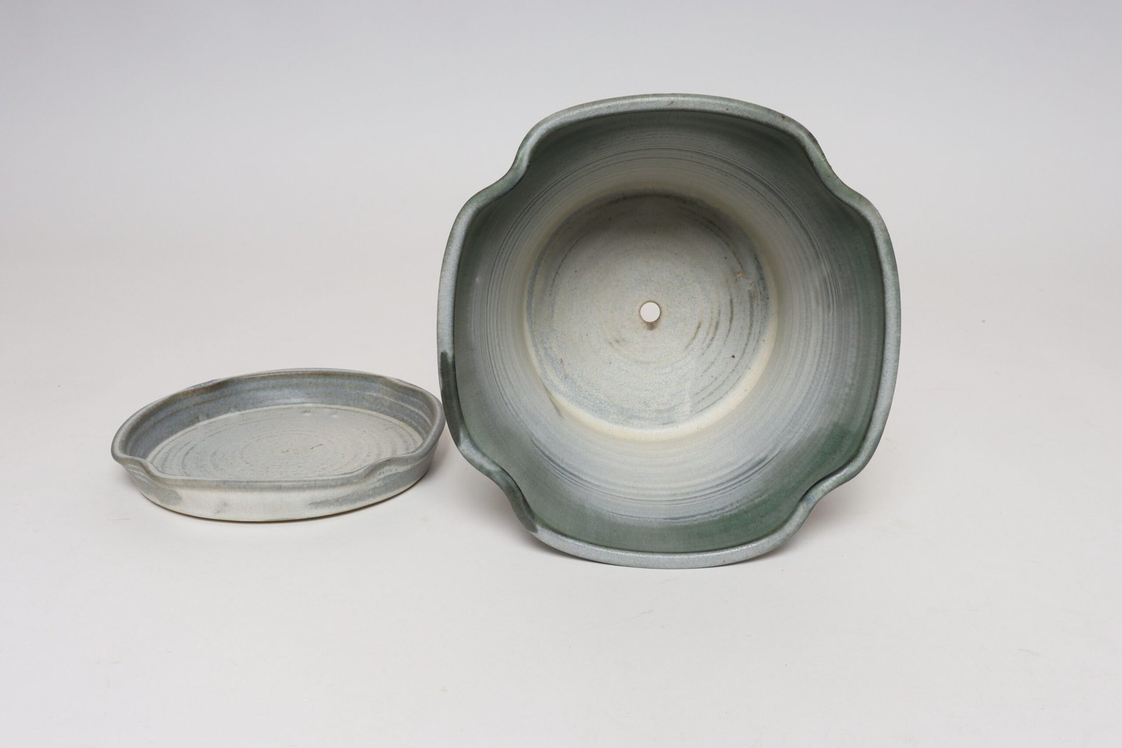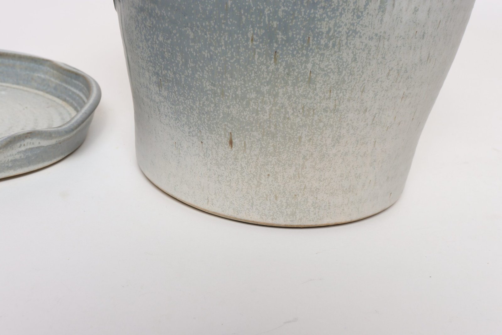 Studio ceramic planter with drainage hole and plate/saucer by ceramicist, Deanna Nichols (b. 1942-2017, Missouri).