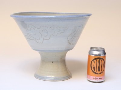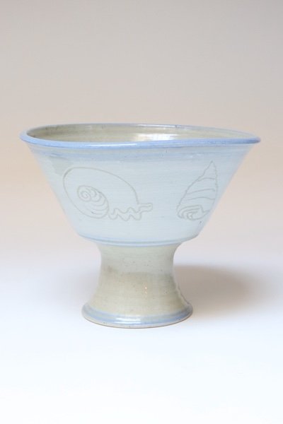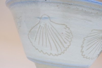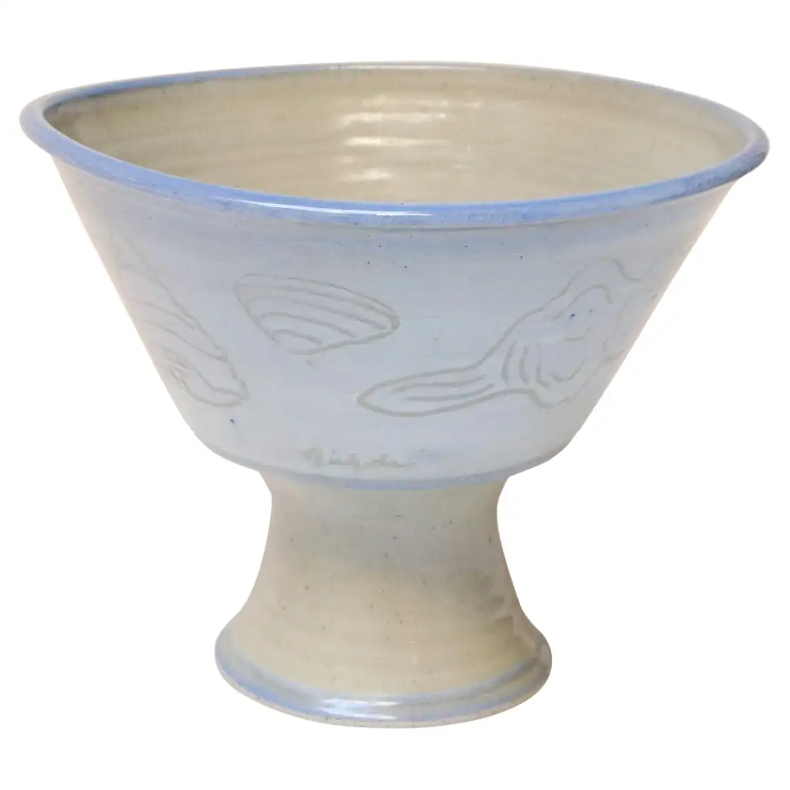 Vintage Incised Studio Pottery Compote Vase with Shell Motif by Deanna Nichols