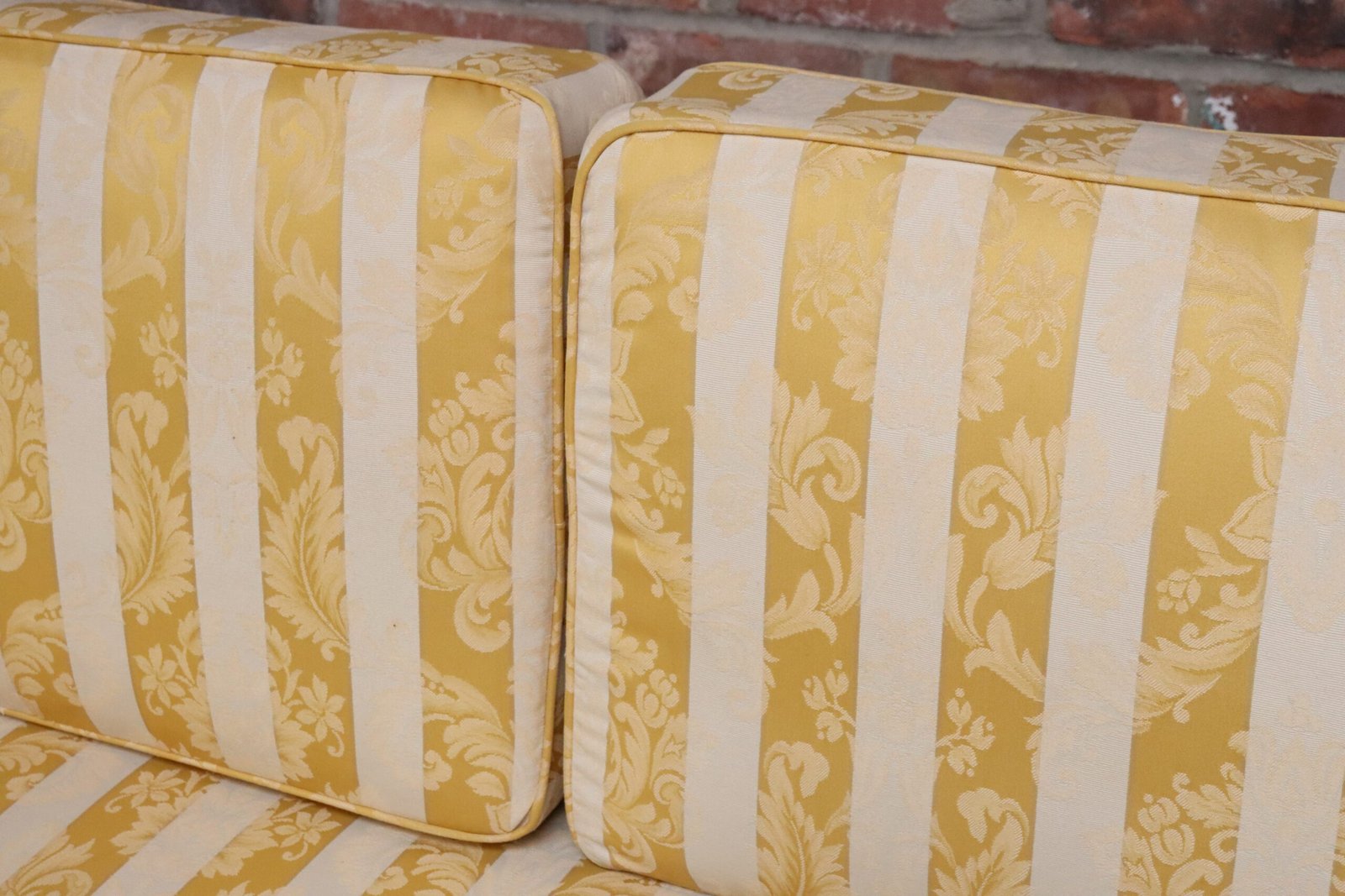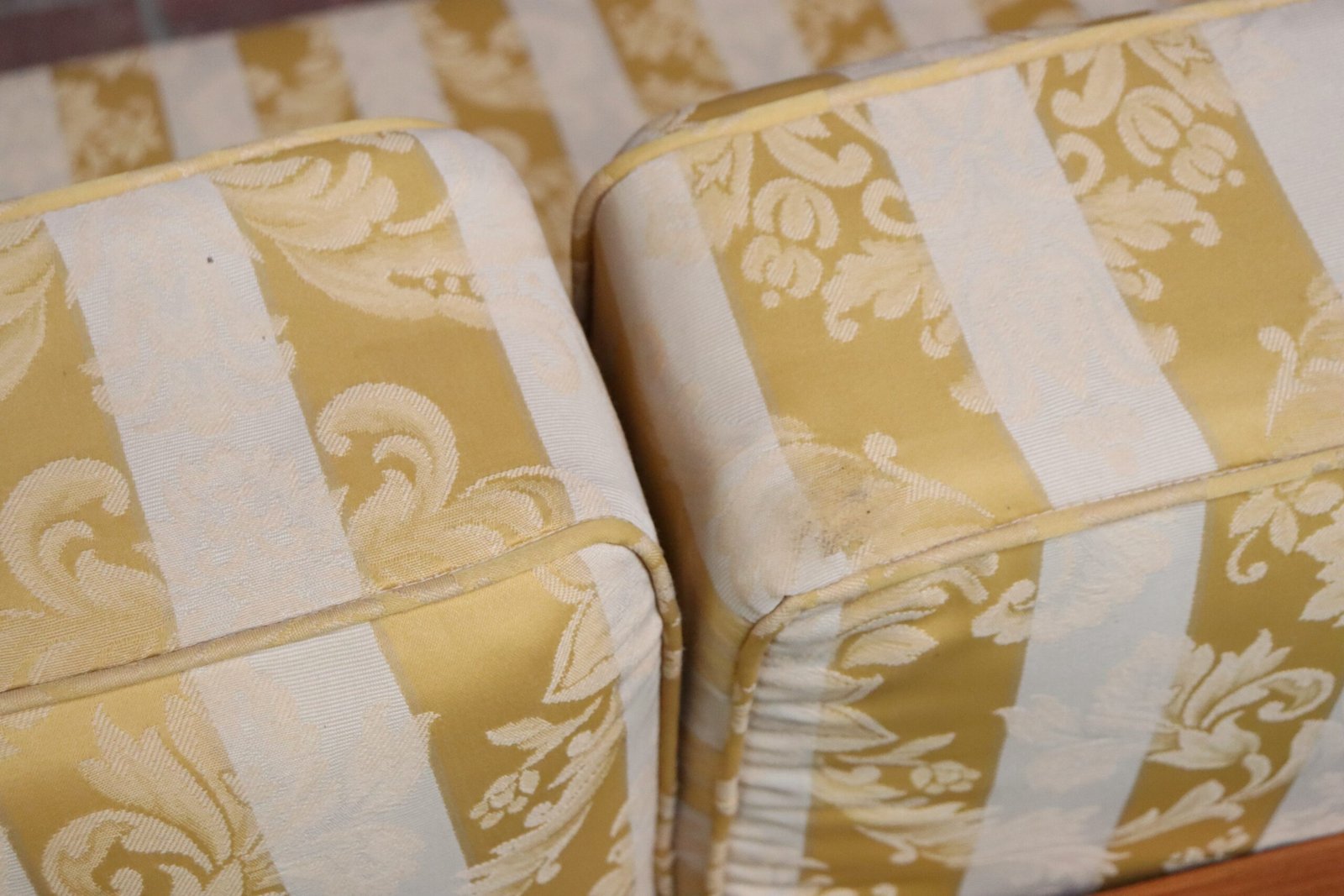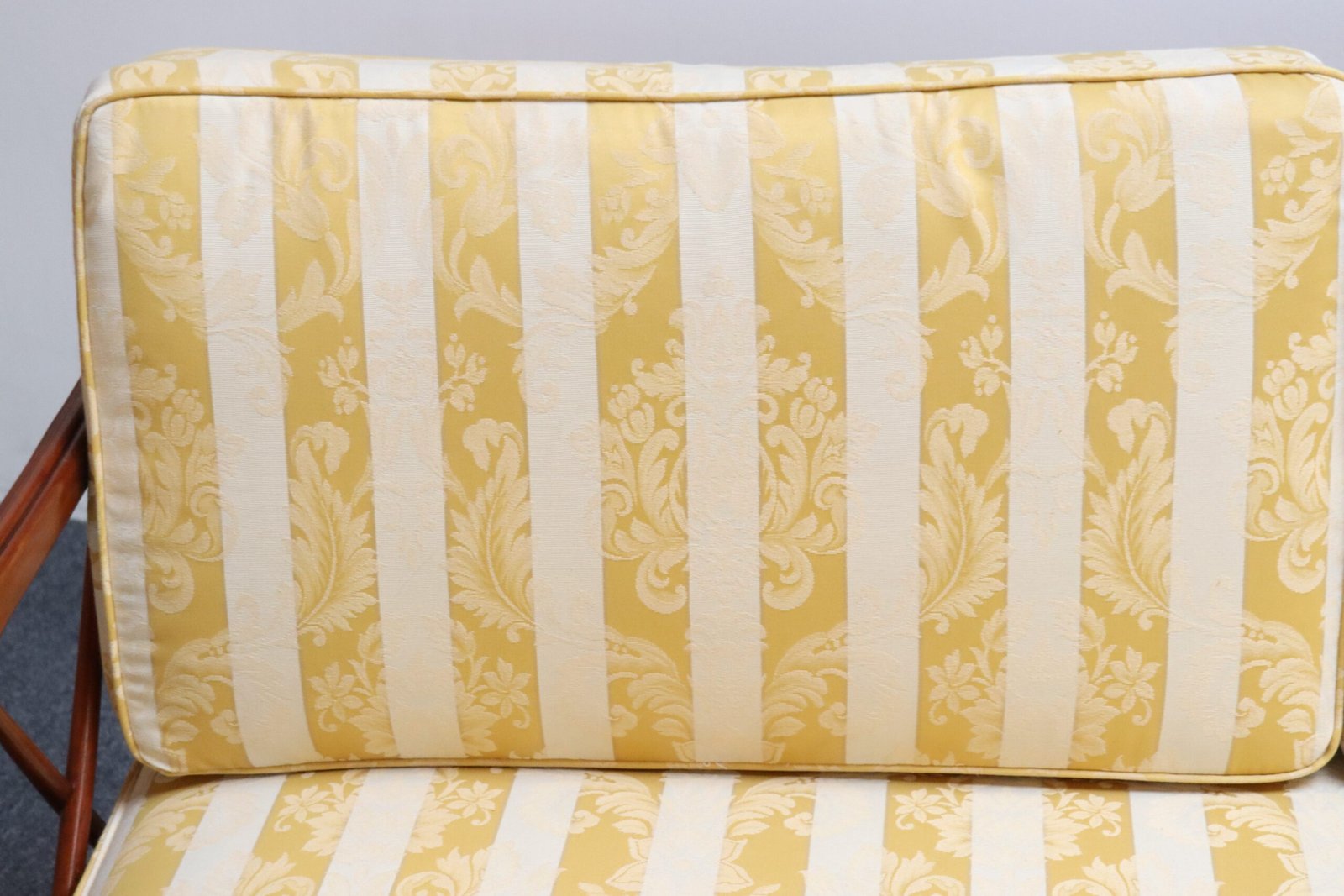 Cushions retain the original metal-spring construction and upholstery (6″ high seat cushion is appropriately constructed like a mattress given its purpose, and back rests which double as pillows/head rests are equally dense/supportive).