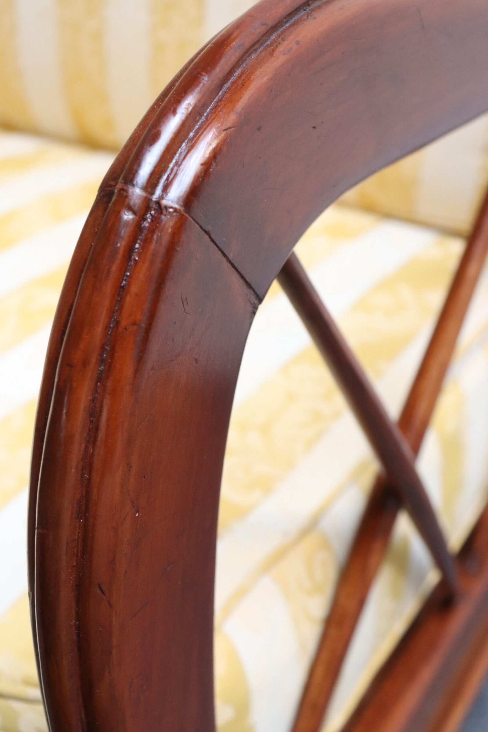 Newly refinished; wear remains as shown (scuffs/general wear). Original upholstery shows only light wear.