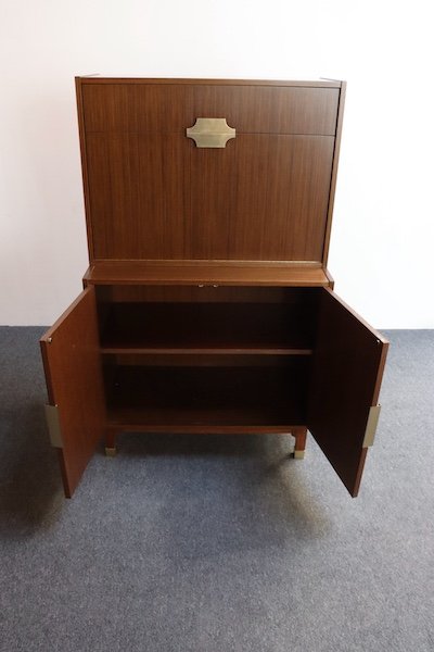 Vintage Italian Modernist Mahogany and Brass Bar Cabinet by Longato Arredamenti