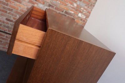 Versatile piece, designed for bar use but can additionally serve as bedroom or living room storage.