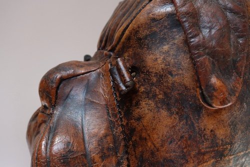 Recently oiled and conditioned – supple leather shows warm patina/light age consistent with use (scuffs present, as shown, and the right eye is secure, but slightly loose compared to the left).